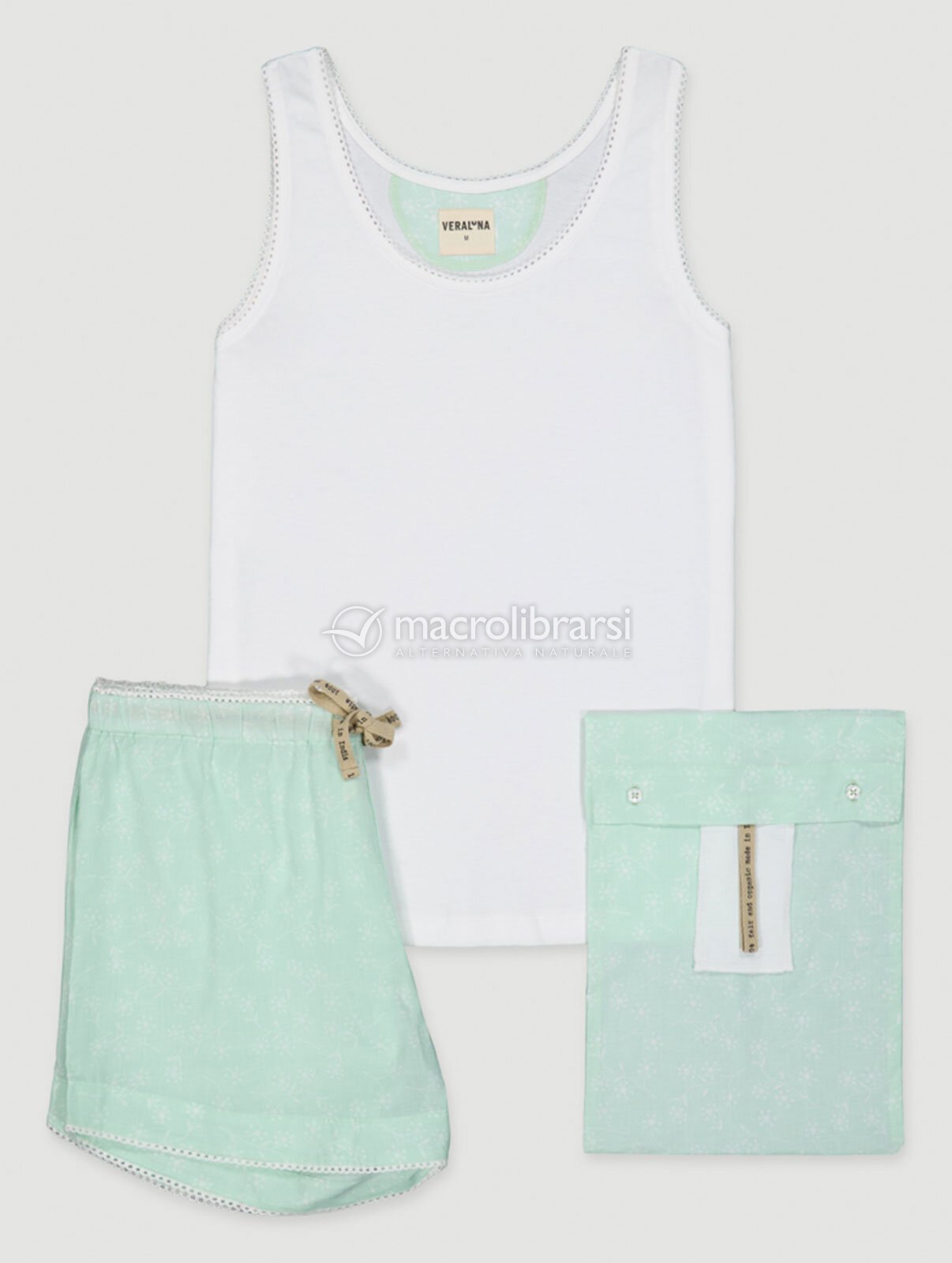 Il Pigiama Donna in Cotone Biologico Mae Ramas di VeraLuna è un capo pensato per offrire comfort e morbidezza durante il riposo, realizzato in cotone biologico per garantire una scelta più naturale e delicata sulla pelle. Ideale per chi cerca un abbigliamento da notte pratico e piacevole da indossare, unisce semplicità, benessere e attenzione ai materiali.