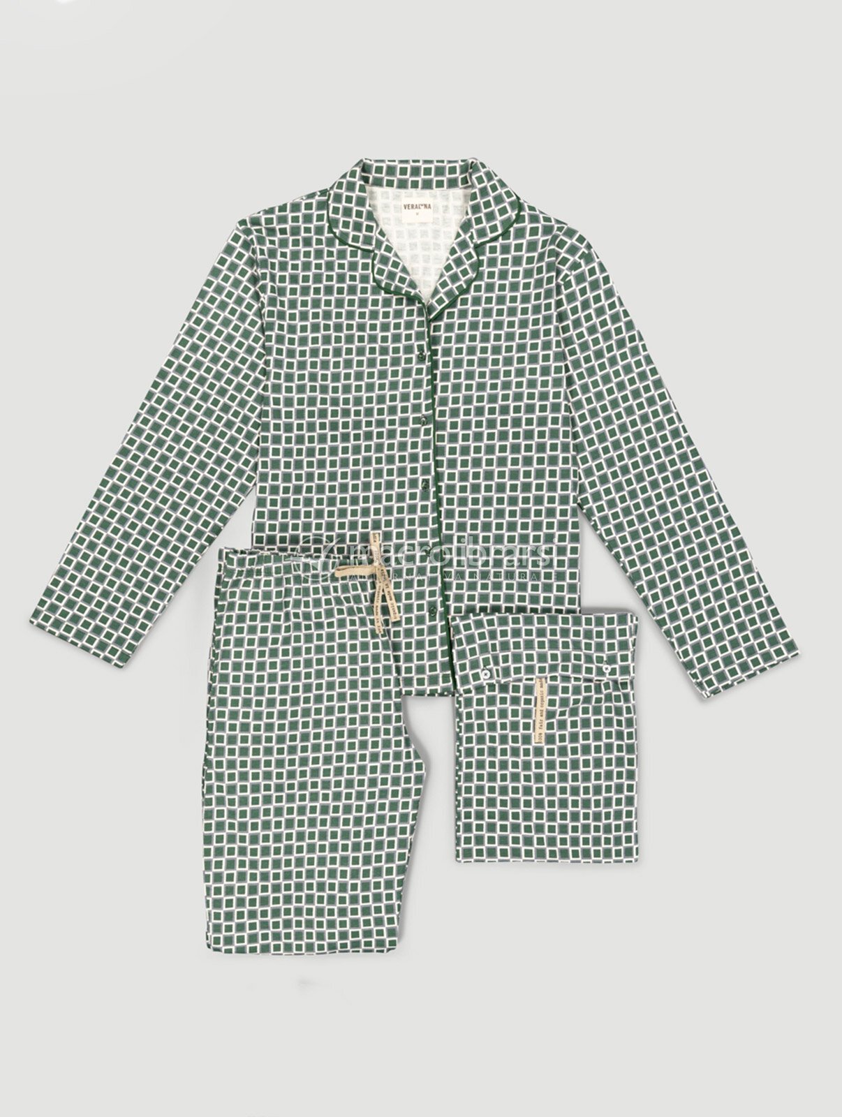 Pigiama in cotone biologico con design “Sigma Blocks” nella variante Prado verde e grigio, comodo e traspirante per notti serene e calde!