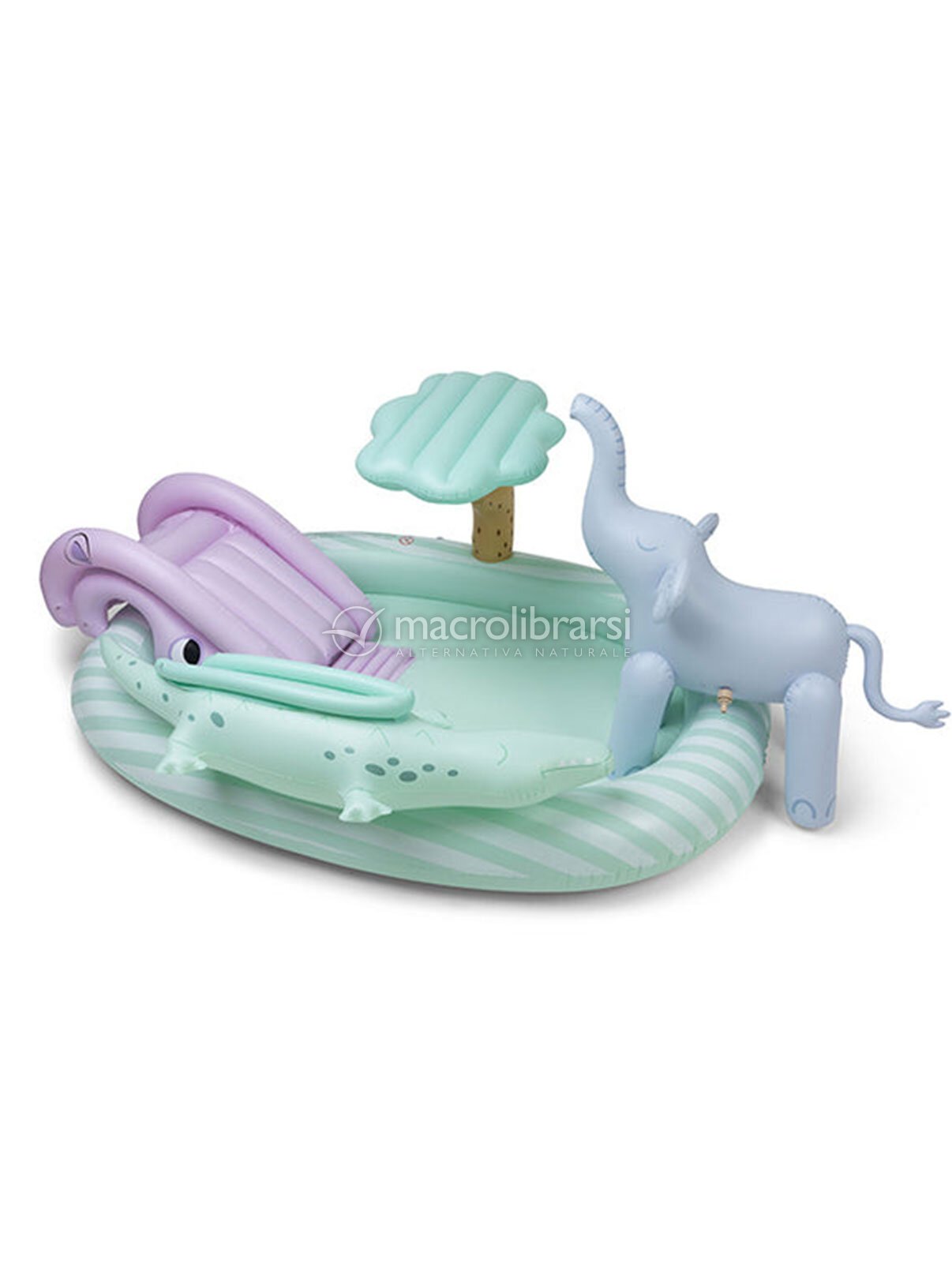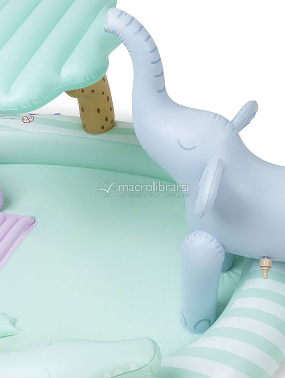 Divertente, elegante e perfetta per le giornate di sole, la piscina con l'allegro spruzzatore a forma di elefante, il bordo a forma di coccodrillo e lo scivolo integrato offrono infinite avventure per i piccoli esploratori. Spaziosa e robusta, è progettata per giochi d'acqua sicuri e condivisi e per momenti estivi indimenticabili.