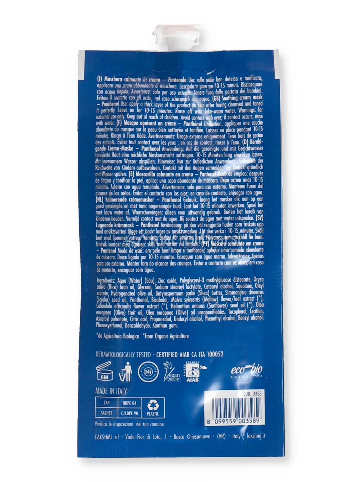 Maschera viso biologica in crema dalla texture ricca e vellutata, studiata per calmare, idratare e proteggere la pelle sensibile e fragile.