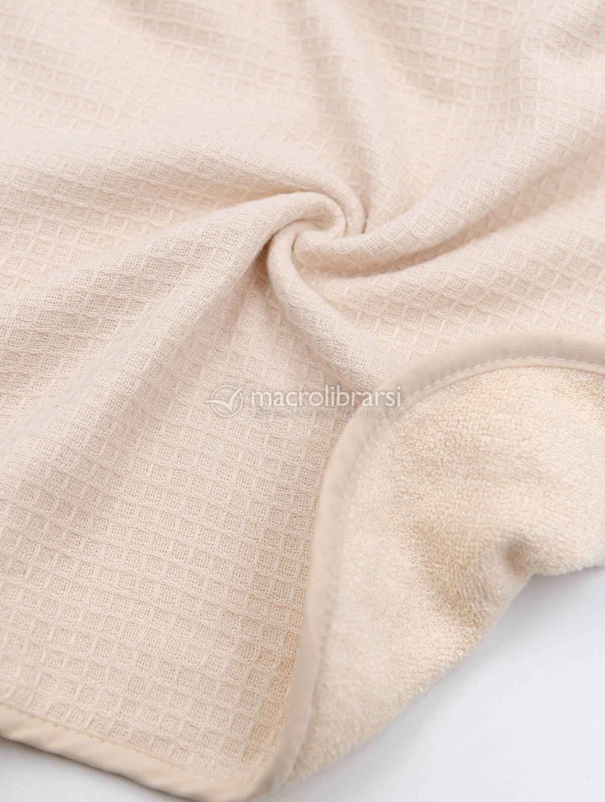 La fibra di origine vegetale asciuga con delicatezza senza irritare la pelle, mentre il design leggero ma avvolgente lo rende comodo anche in viaggio o al mare.