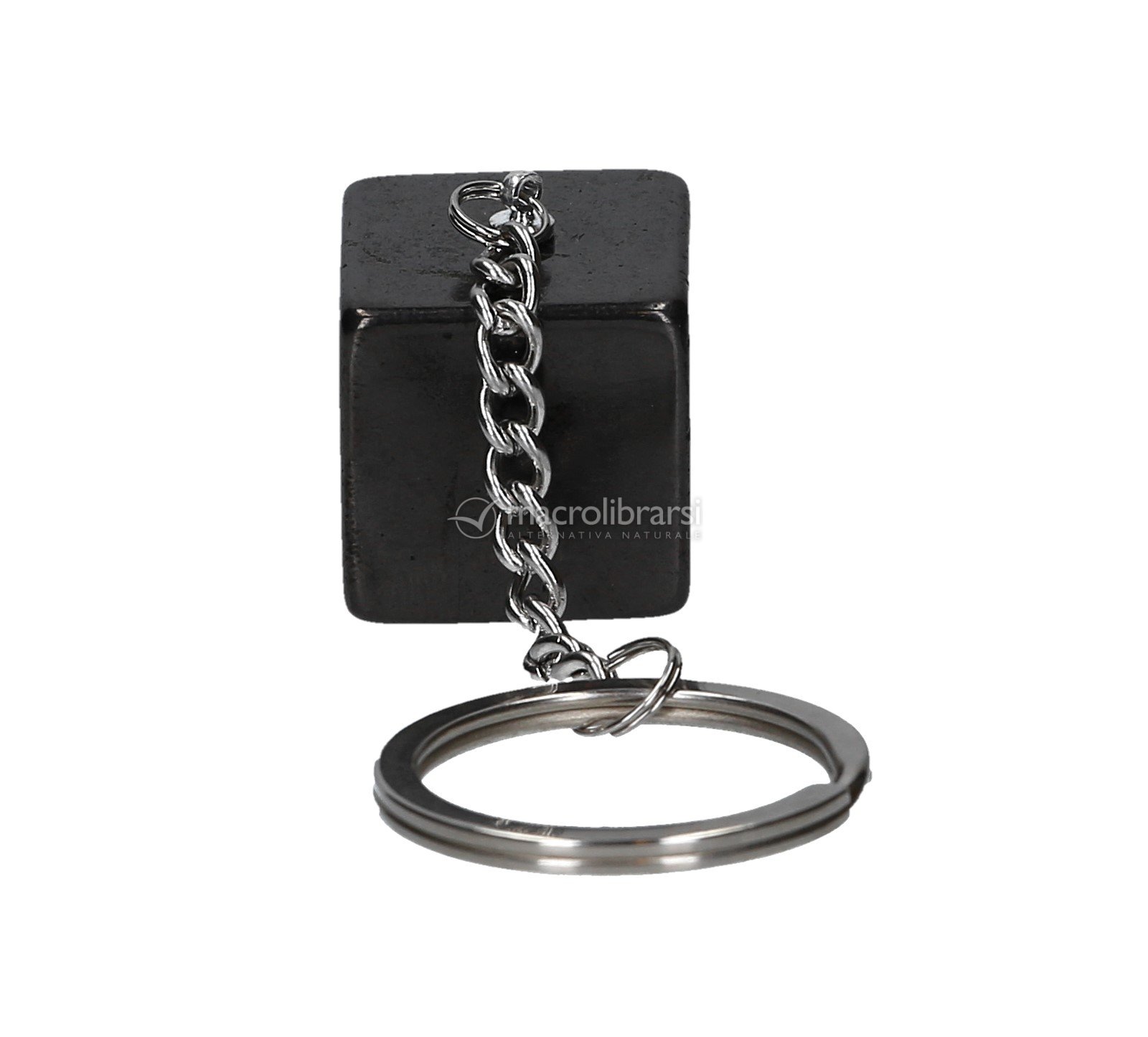 Portachiavi in Shungite (cubo) con componenti in acciaio inox.