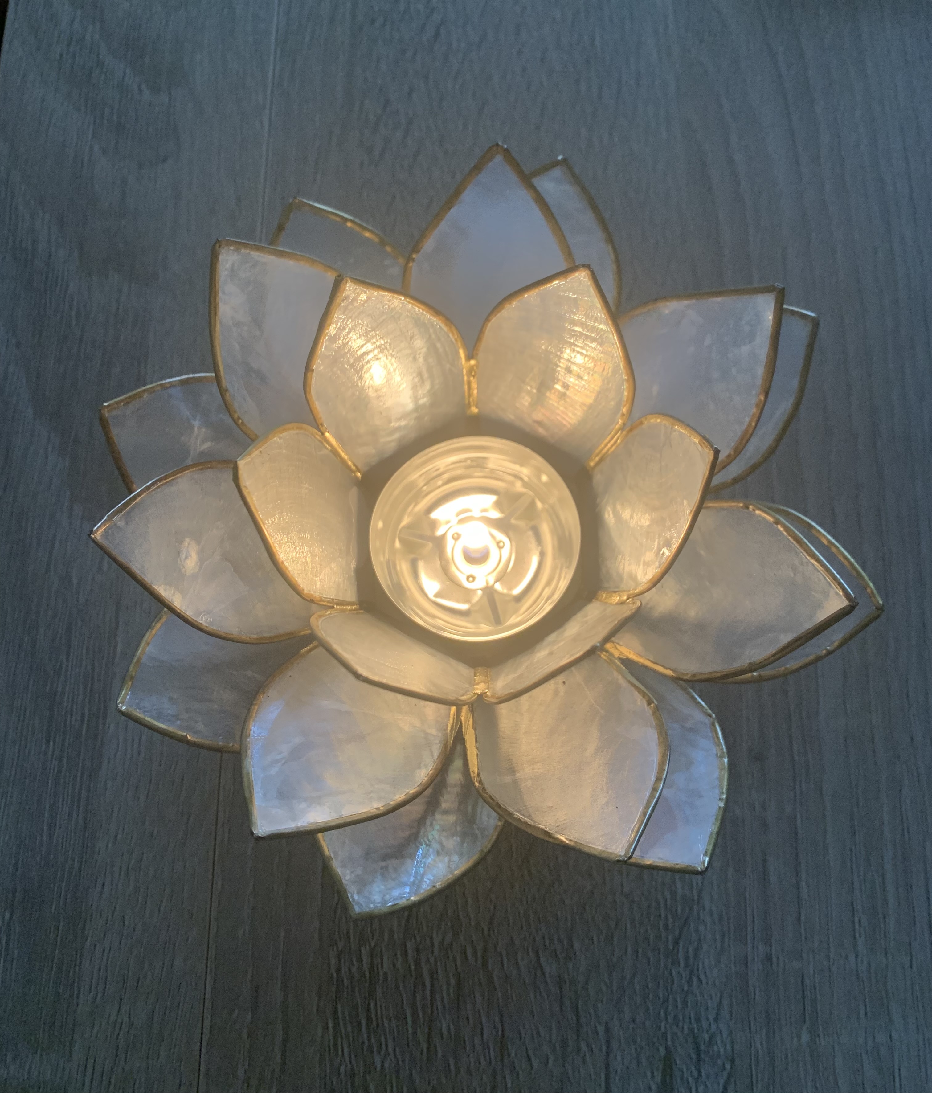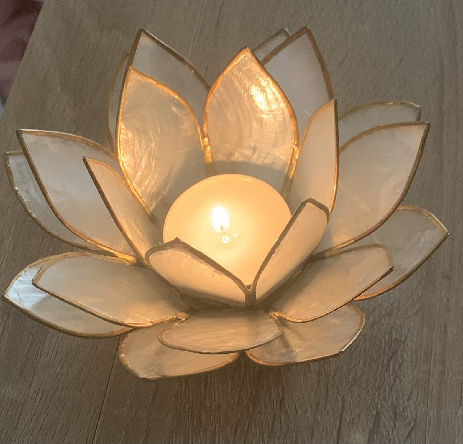 Molto bello e scenografico questo porta candela a forma di fiore di loto. La fiamma della candela emana una luce calda molto rilassante e i petali del fiore proteggono la fiamma da eventuali correnti d’aria. Si scalda un po’ la base con la candela accesa all’interno , ma ho risolto mettendo sotto un tappo di un barattolo.
