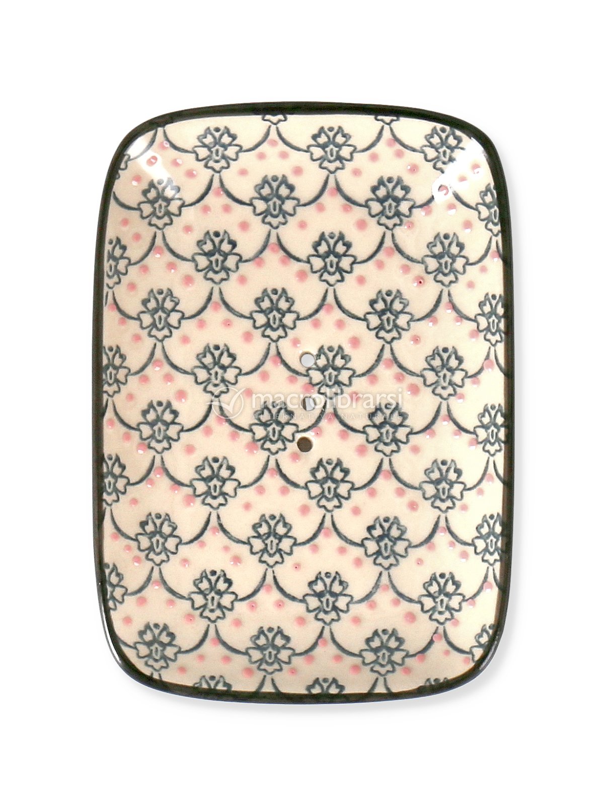 Soap Dish Oriental è un portasapone artigianale dalla forma rettangolare adatta a diversi tipi di sapone o shampoo solido.