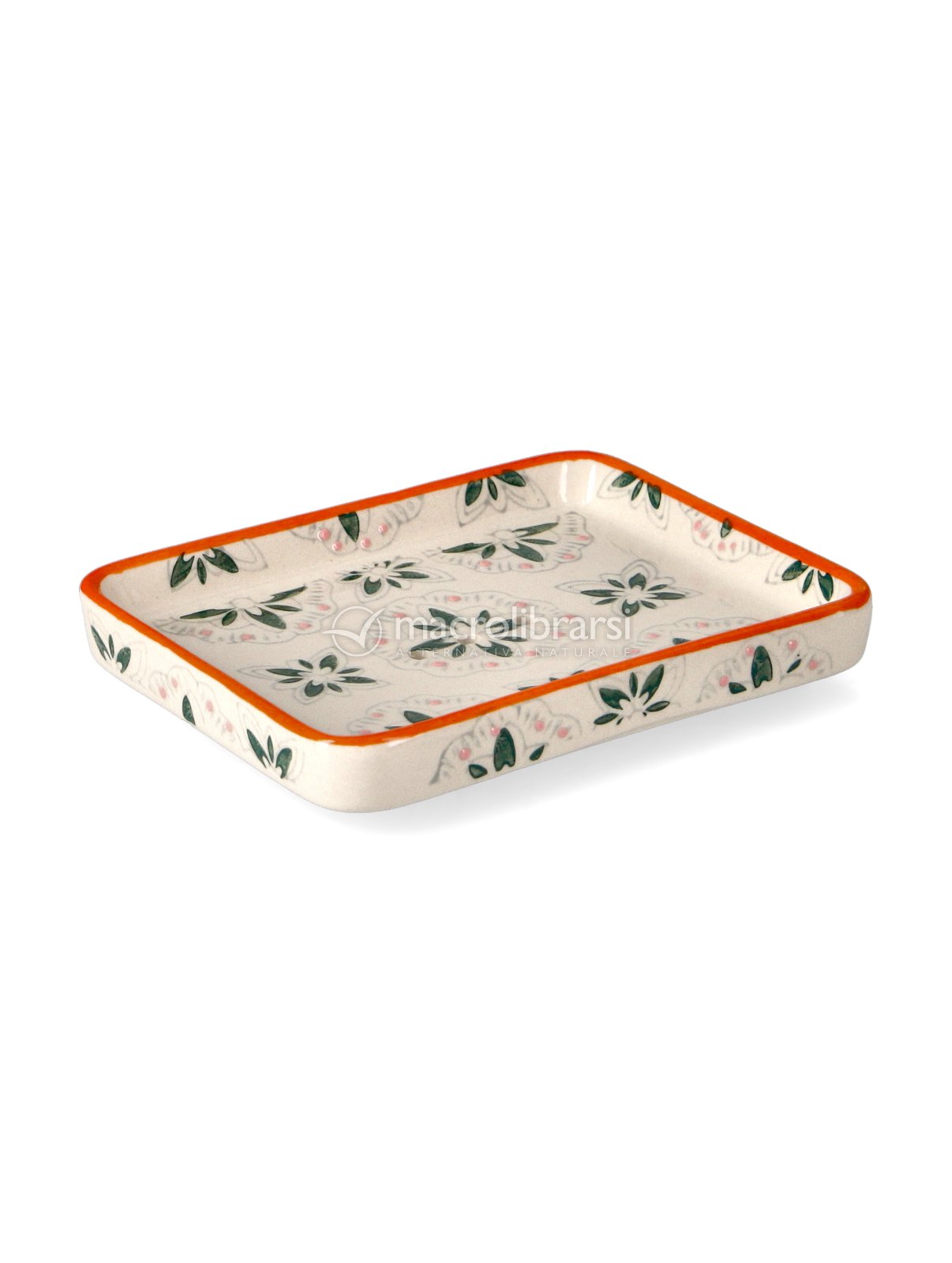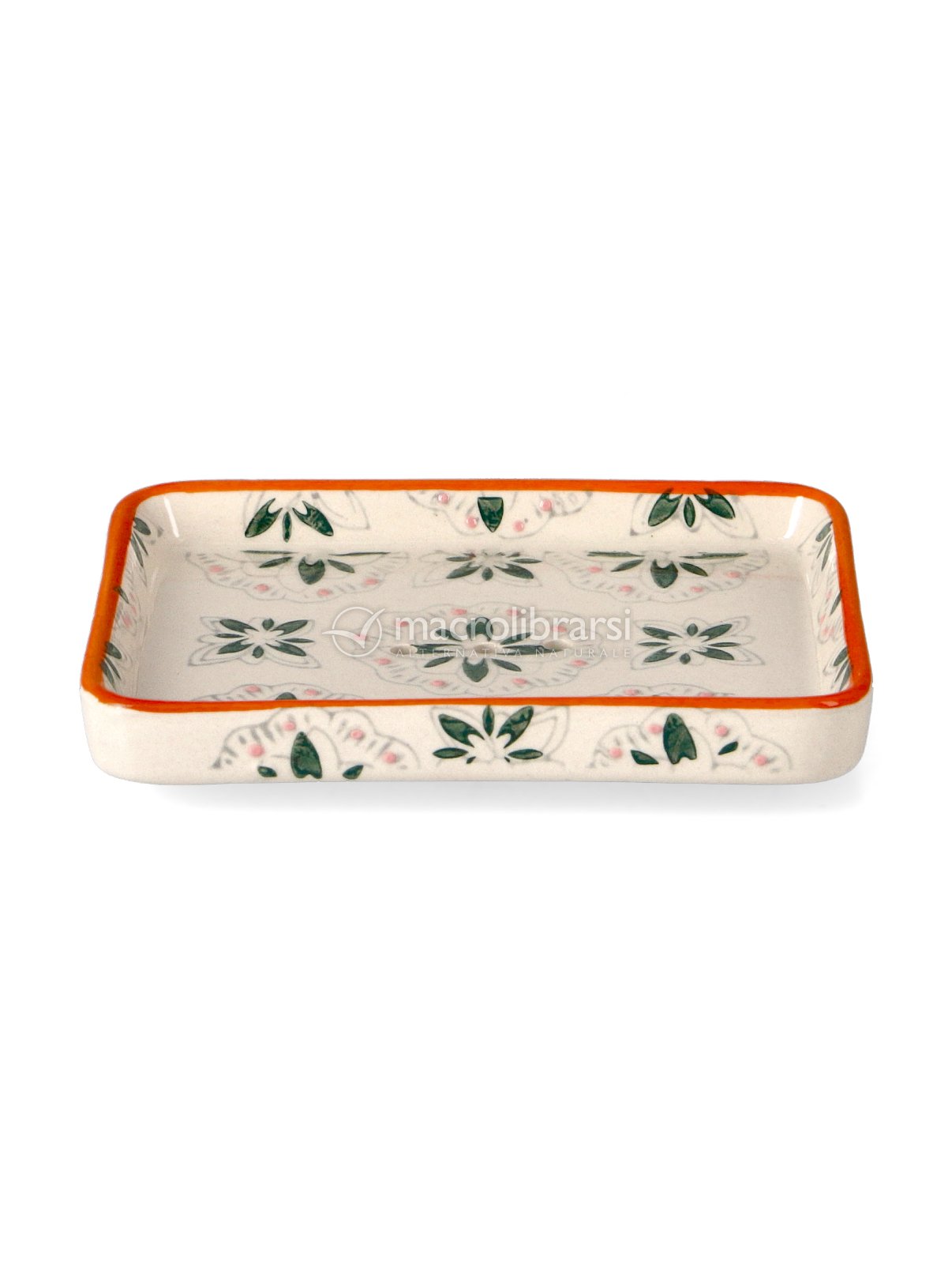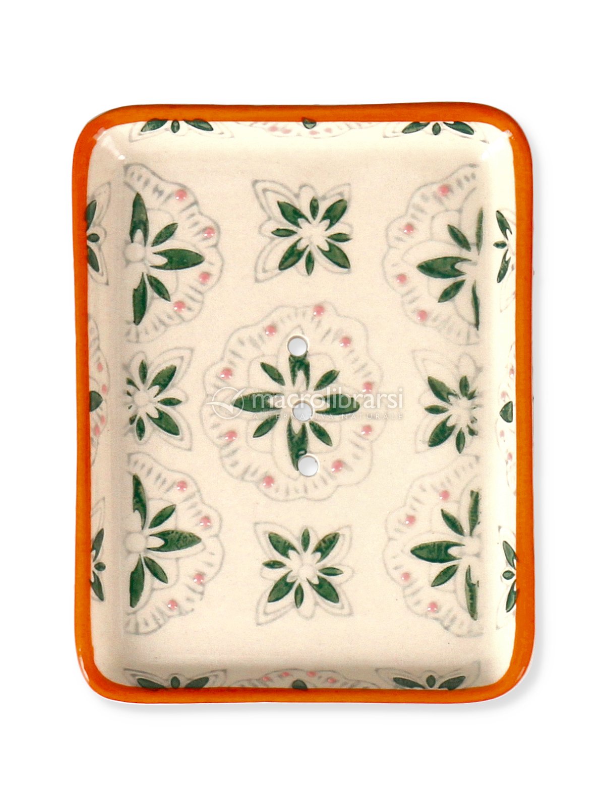Portasapone di ceramica decorato con i fiori molto bello. È comodo perché largo e la saponetta si prende e si posa con facilità. La presenza dei fori fa sì che l’acqua in eccesso defluisca e il sapone resta asciutto .Ottimo acquisto a un prezzo contenuto.