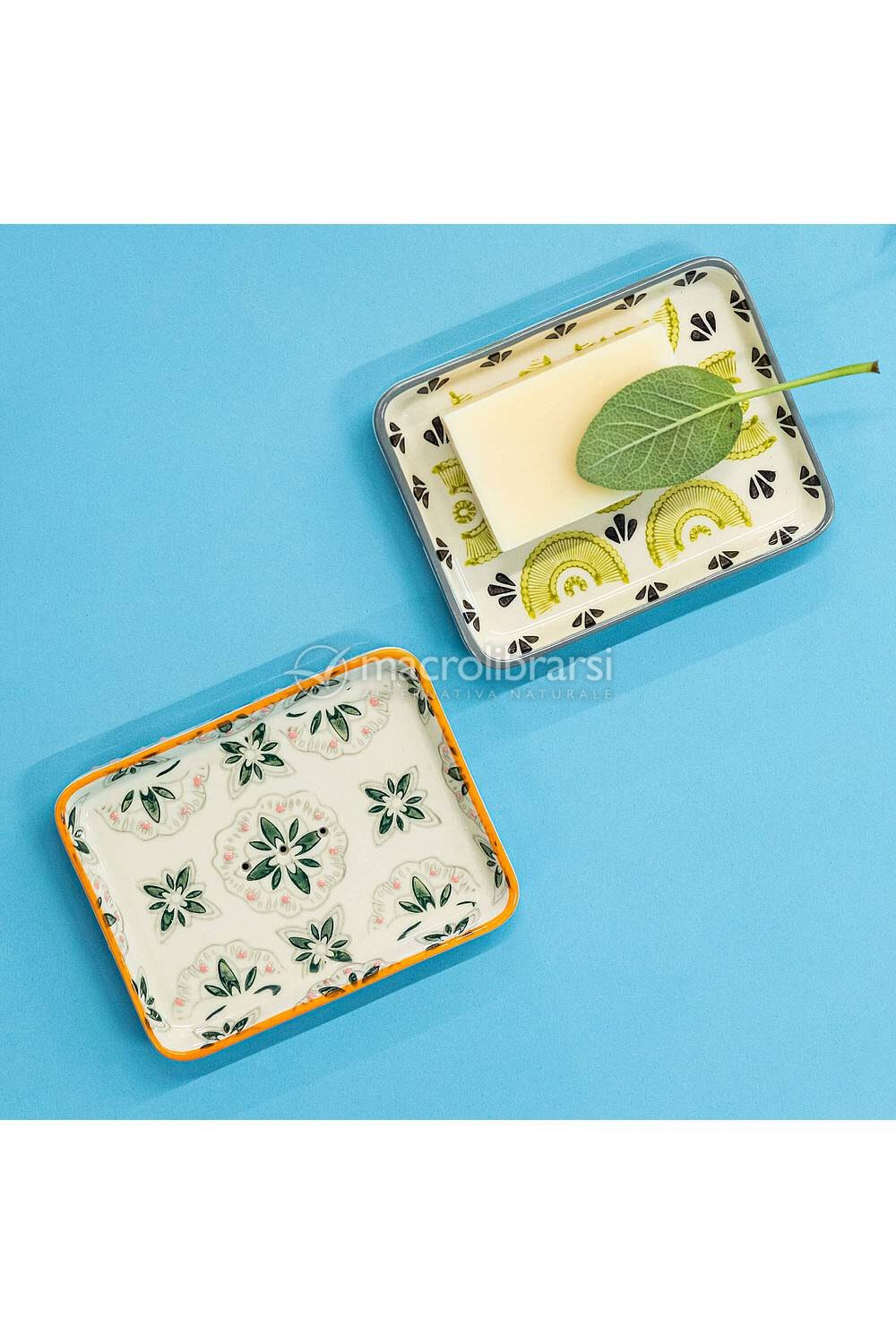 Soap Dish Tropical è un portasapone in gres porcellanato dipinto a mano, con colori e motivi tropicali.