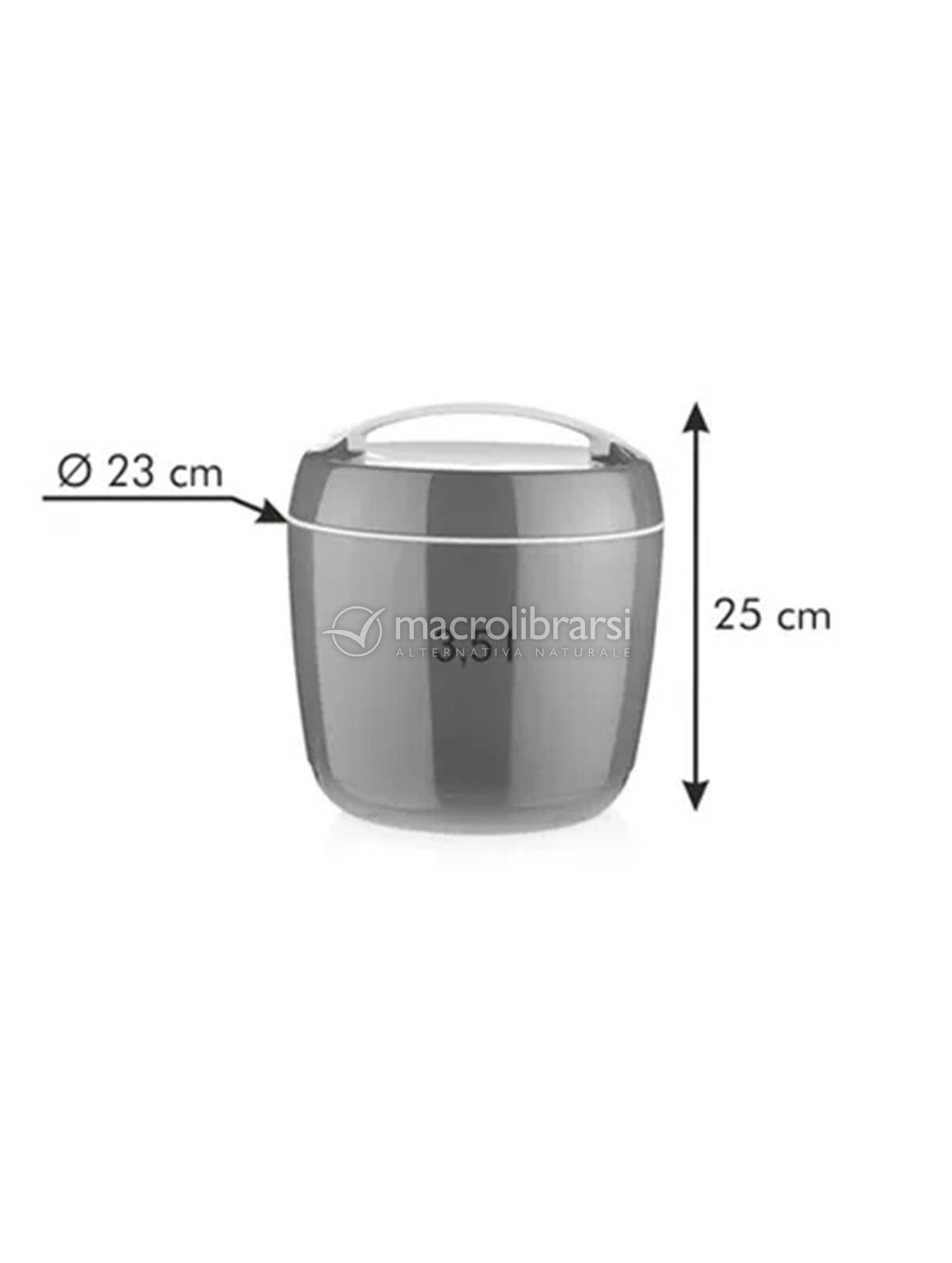 Realizzato in plastica resistente, si distingue per il suo design moderno e raffinato, studiato per unire funzionalità ed estetica. La solida maniglia lo rende facile da trasportare, mentre la struttura a doppia parete con rivestimento termico-isolante aiuta a mantenere costante la temperatura degli alimenti per almeno 6 ore.
