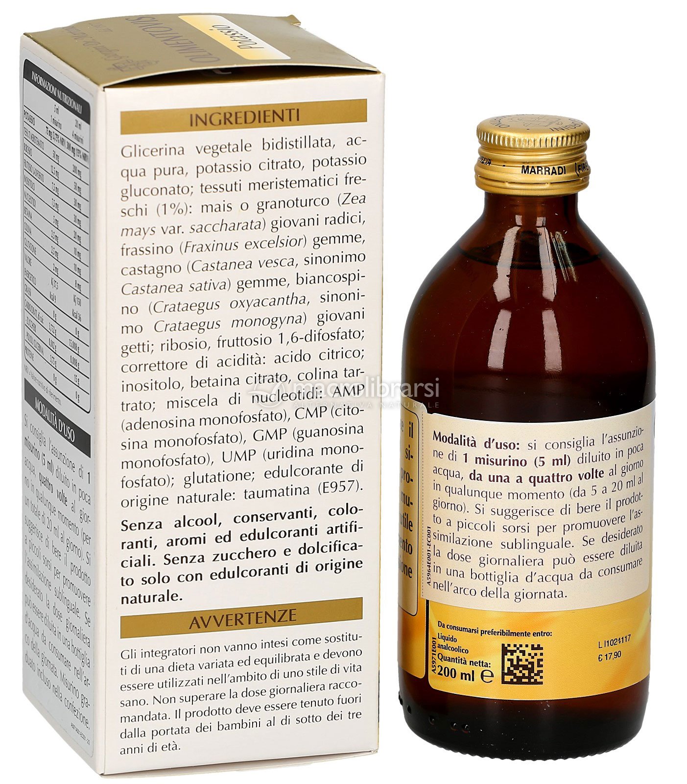 Si consiglia l’assunzione di 1 misurino (5 ml) diluito in poca acqua, quattro volte al giorno in qualunque momento (per un totale di 20 ml al giorno). Si suggerisce di bere il prodotto a piccoli sorsi per promuovere l’assimilazione sublinguale. Se desiderato la dose giornaliera può essere diluita in una bottiglia d’acqua da consumare nell’arco della giornata. Misurino graduato incluso nella confezione.