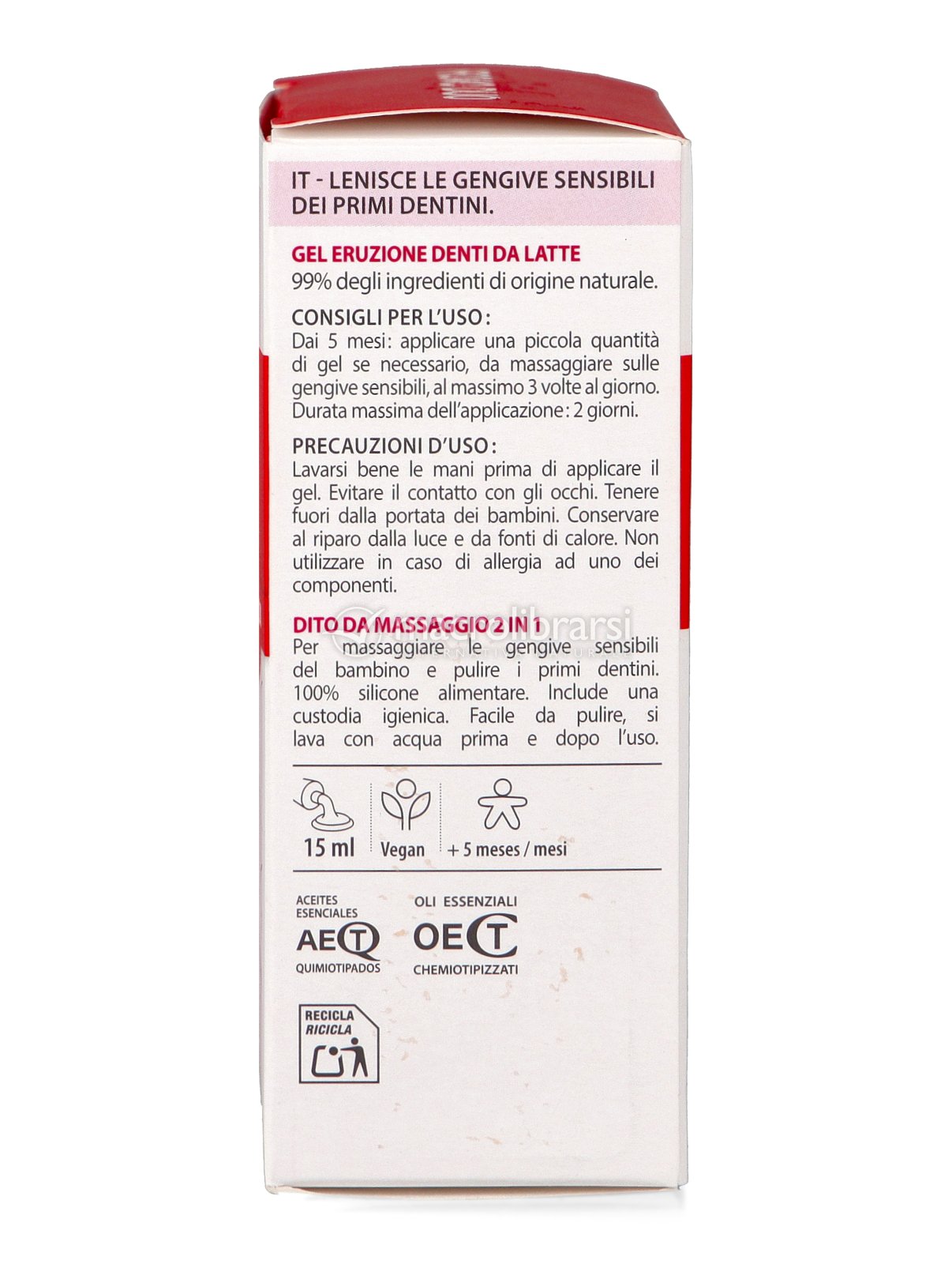 | Confezione | Gel lenitivo 15 ml + dito in silicone con custodia igienica |
