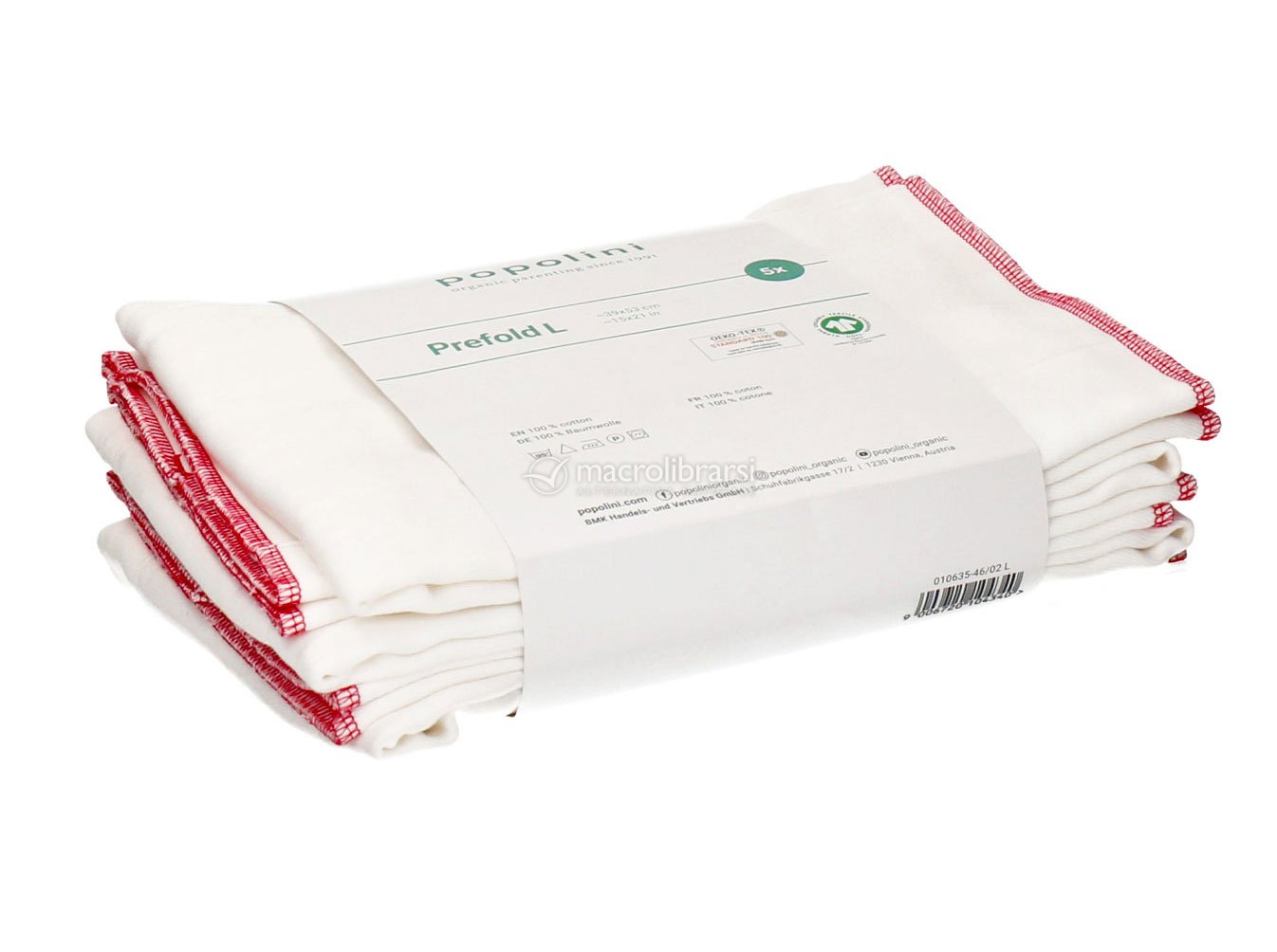 Prefold Popolini per pannolini lavabili con sistema a 2 pezzi, da inserire, piegati, all'interno di cover impermeabili o avvolti intorno alla vita del bambino e chiusi con la spilla elastica Snappi.