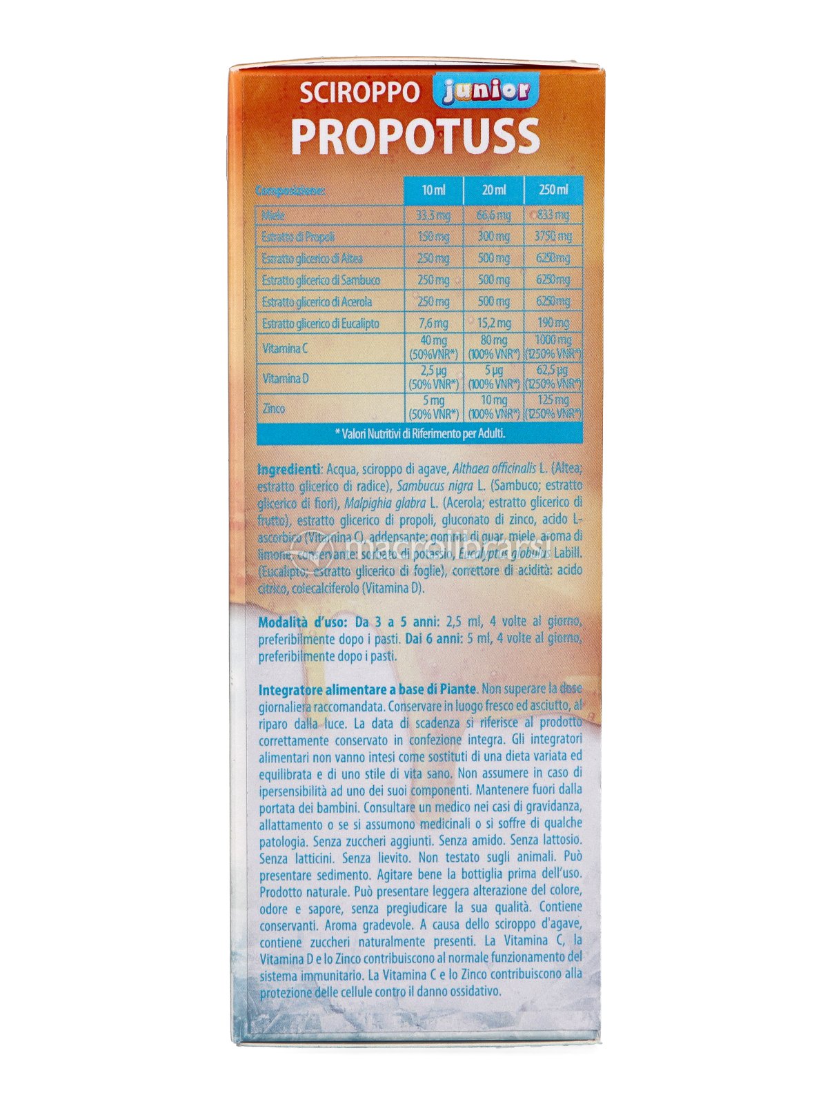 Lo Sciroppo Propotuss Junior - Altea e Propoli è un'integratore alimentare a base di piante formulato per i più piccini. Contiene:
