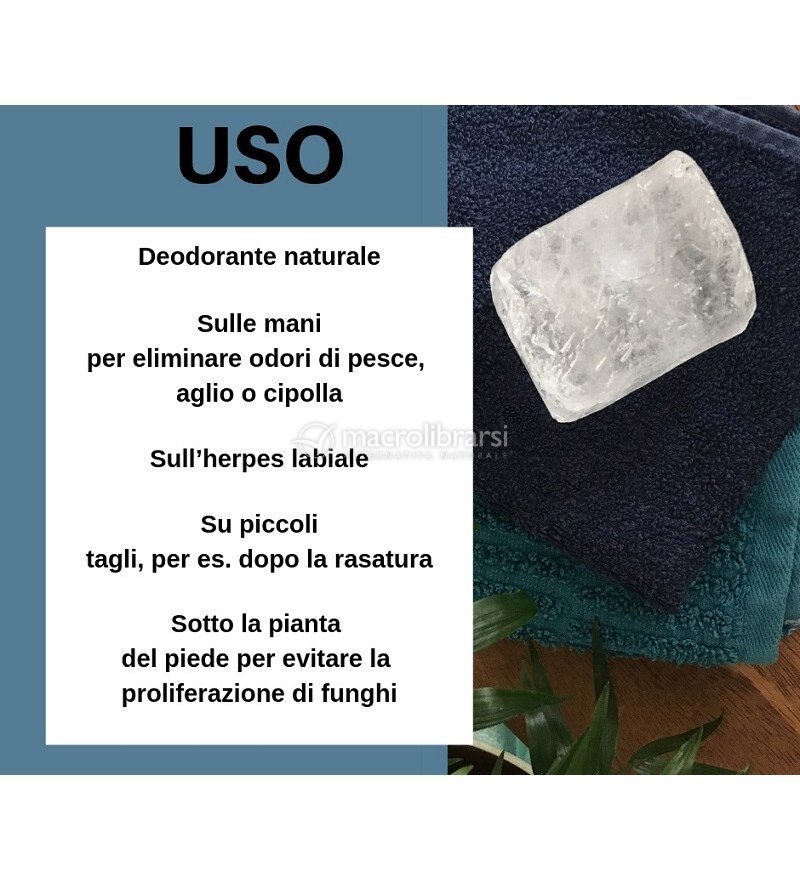 Conosco la pietra deodorante già da parecchi anni e la alterno ad altri tipi di deodoranti, non perché non mi soddisfi ma proprio per mio modo di essere che ho sempre voglia di cambiare e provare cose nuove. Funziona bene. A differenza di chi ne evita la rottura io la rompo apposta e ne mescolo una piccola quantità di pietruzze in uno spruzzino con poca acqua dove si scioglie, poi rinnovo quando finisce, perché mi è più comodo spruzzare e spargere un po' con la mano piuttosto che la trafila di bagnare, passare , asciugare ecc. Comunque, per chi non conosce il prodotto lo consiglio senz'altro, perché efficace e tutto sommato molto economico rispetto ad altri deodoranti che magari non sono neppure altrettanto efficaci.