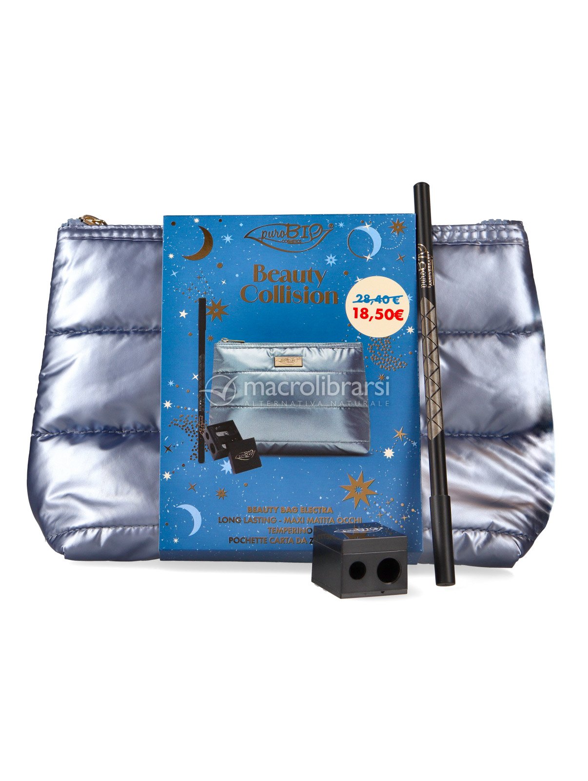 Con il kit regalo Electra di puroBIO definisci lo sguardo con precisione e semplicità grazie alla matita occhi biologica Long Lasting, in formato maxi, accompagnata dal pratico temperino professionale.