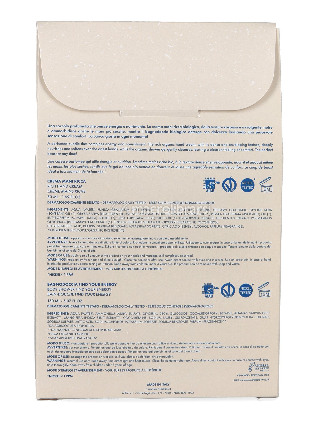 | Confezione | Crema mani ricca (50 ml) + Bagnodoccia Find Your Energy (100 ml) |
