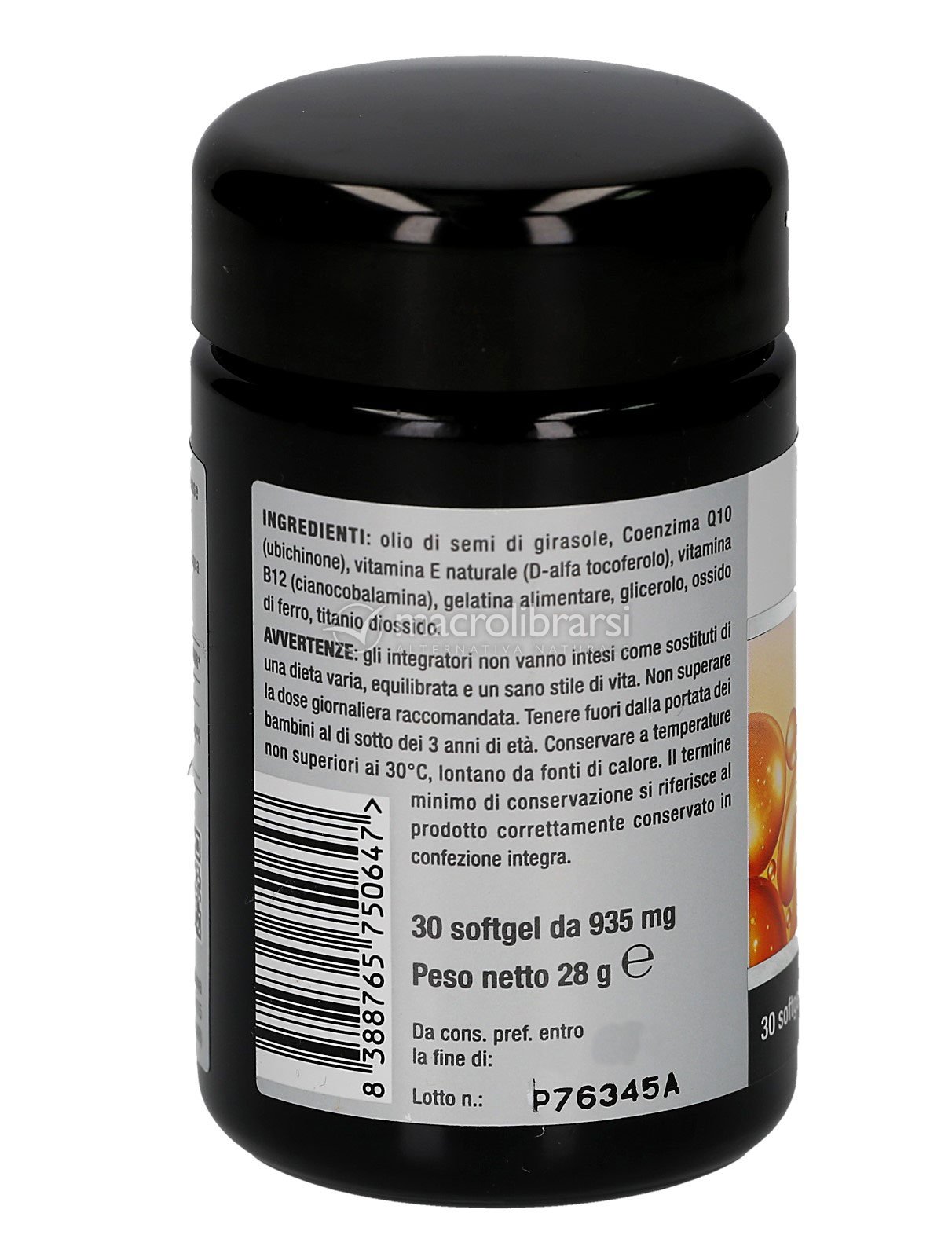 Q10 Pro - Integratore a base di Coenzima Q10 (Ubichinone), che contiene anche vitamina E naturale (d-α-tocoferolo) e vitamina B12 (cianocobalamina).