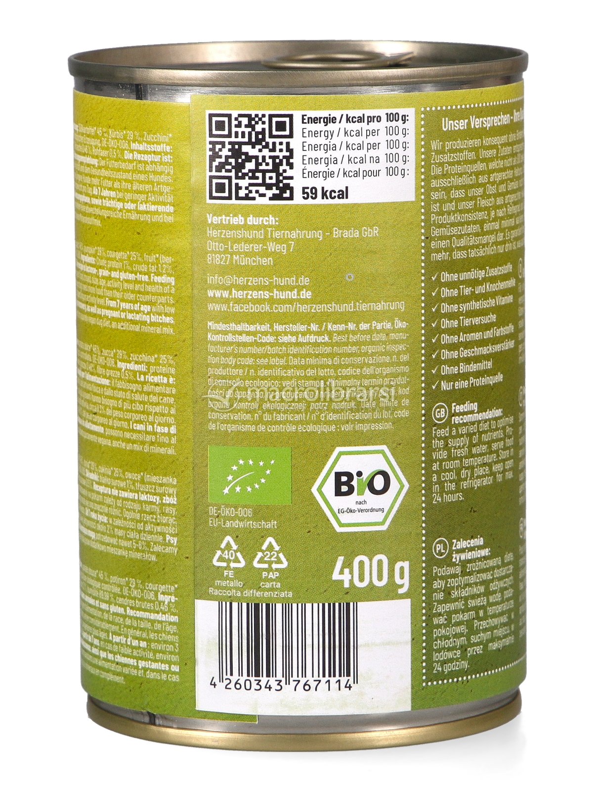 Il Ragù di Verdure Biologico è un mangime complementare Premium che porta nella ciotola del tuo cane tutta la bontà semplice degli ortaggi coltivati secondo natura.