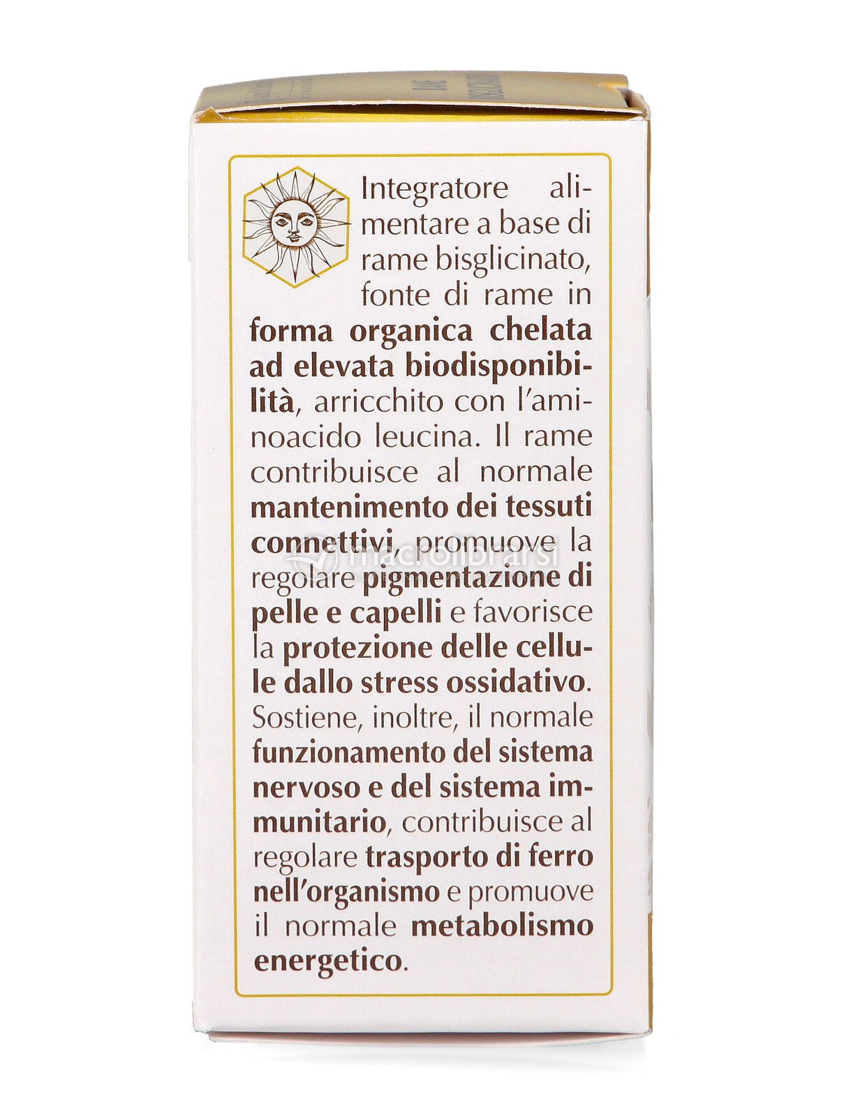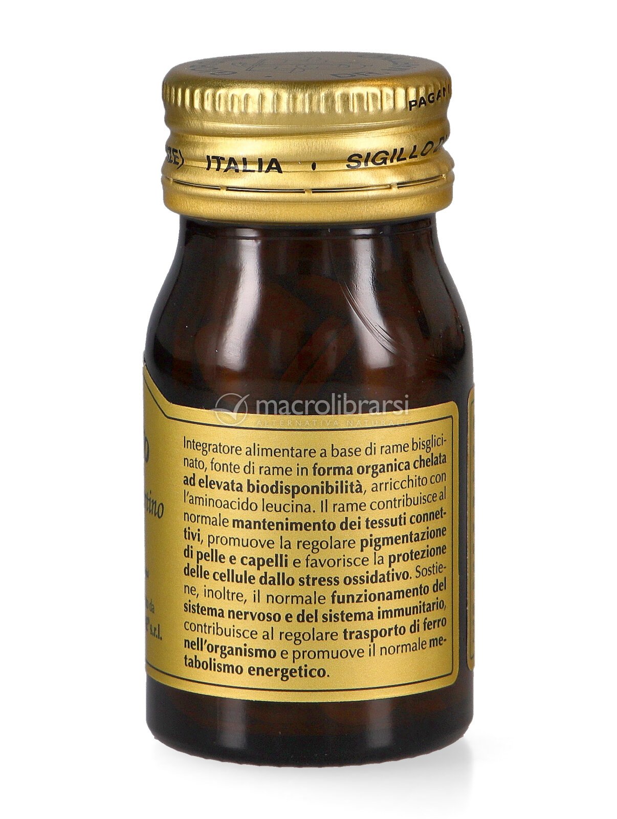 Integratore alimentare a base di rame bisglicinato, fonte di rame in forma organica chelata ad elevata biodisponibilità, arricchito con leucina.
