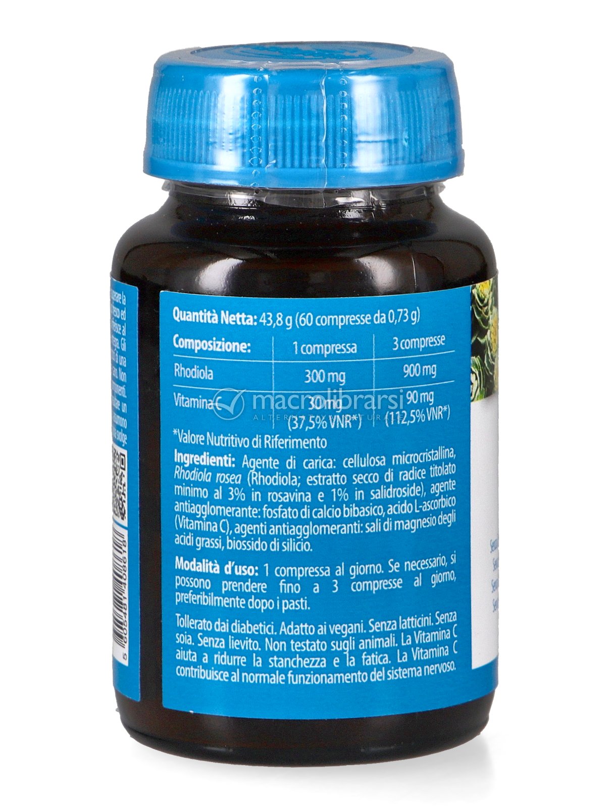 | Disclaimer | Non superare la dose giornaliera consigliata. Gli integratori alimentari non vanno intesi come sostituti di una dieta variata ed equilibrata. Tenere fuori dalla portata dei bambini al di sotto dei tre anni. Non utilizzare in gravidanza e nei bambini o comunque per periodi prolungati senza sentire il parere del medico. Conservare in luogo asciutto e lontano da fonti di calore. Richiudere la confezione dopo l'uso. Macrolibrarsi ricorda l'importanza di seguire uno stile di vita sano e un'alimentazione variata ed equilibrata. |