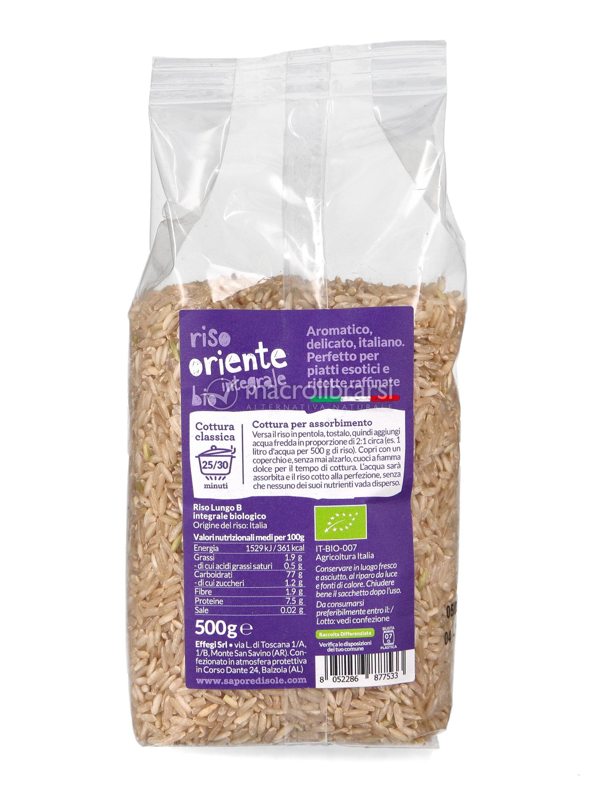 Il Riso Oriente Integrale Sapore di Sole è una varietà orientale coltivata in Italia, dal chicco lungo, rustico e naturalmente aromatico. Elegante e versatile, è ideale per chi ama una cucina creativa, leggera e dal gusto contemporaneo.