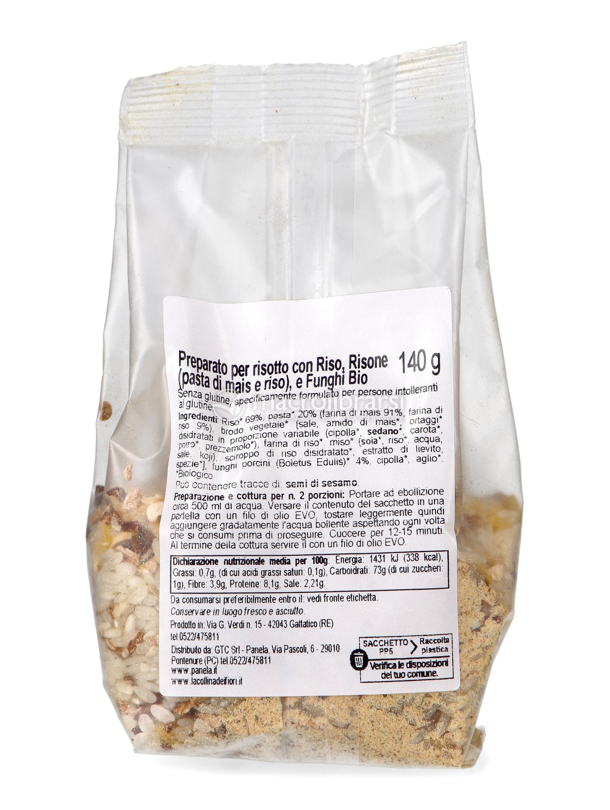 Il Risottone ai funghi de La collina dei fiori è specificamente formulato per persone intolleranti al glutine, a cottura rapida.