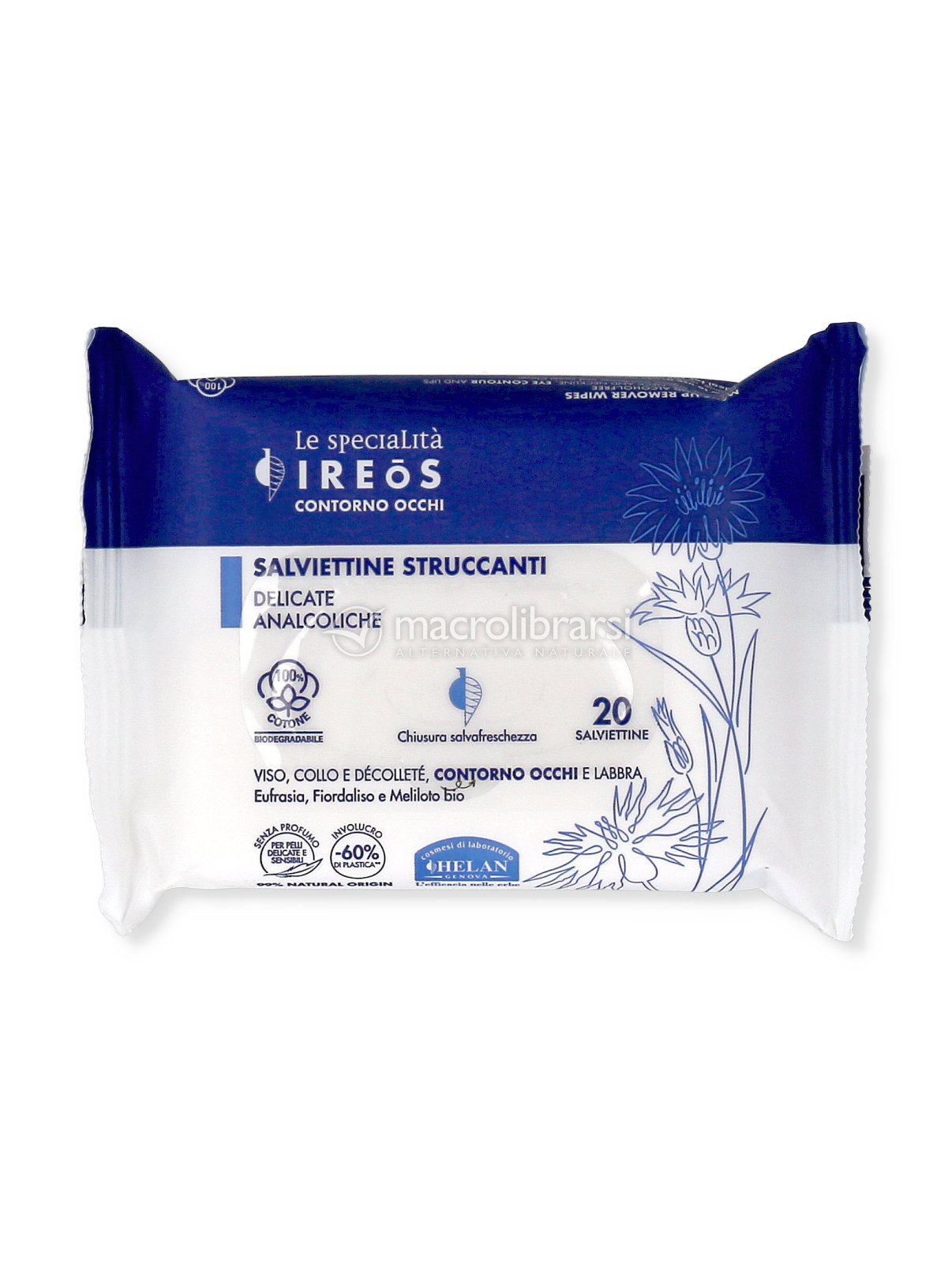 Grazie al tessuto delicato e alla formula naturale con tensioattivi vegetali a base di oli di Cocco e Oliva, le salviette struccanti analcoliche della linea Ireos di Helan non irritano neanche la cute più sensibile.