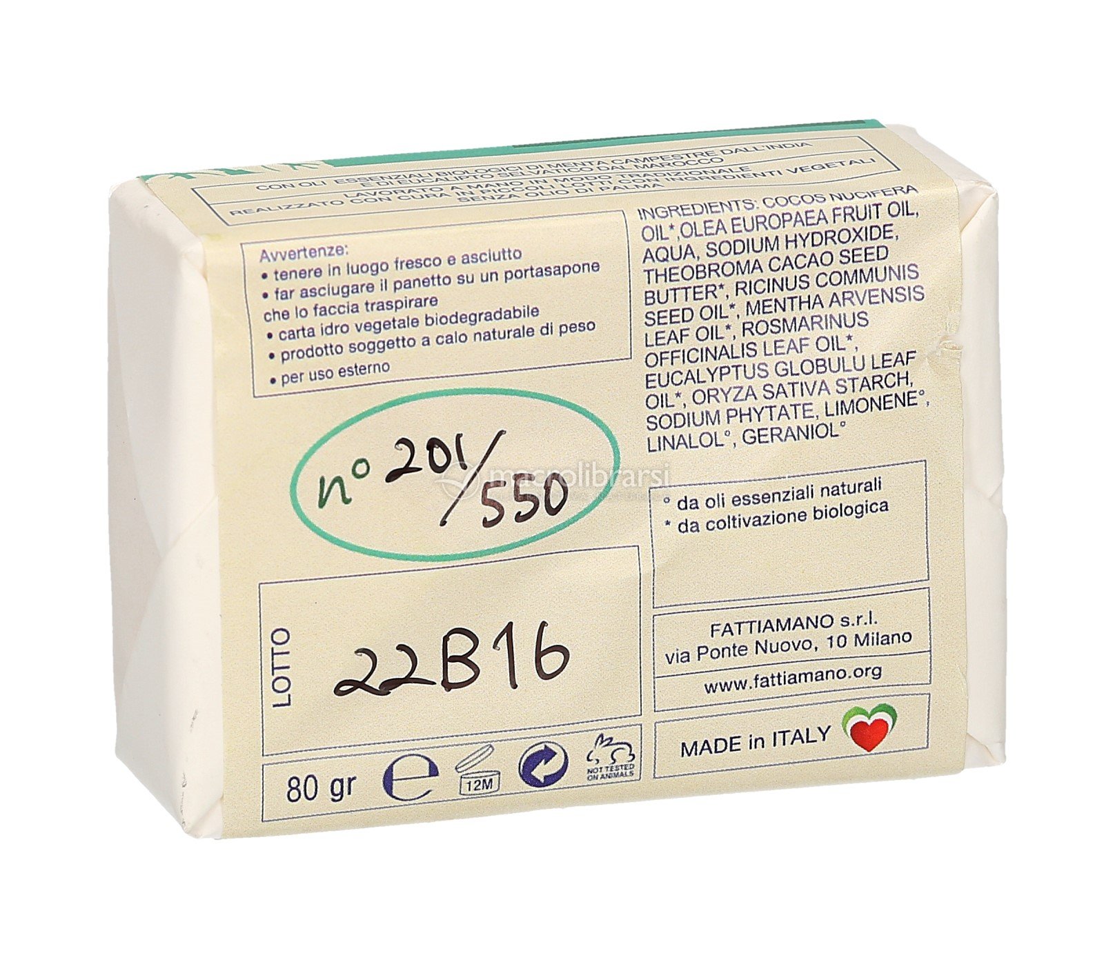 ottimo sapone naturale, il profumo della menta e del rosmarino si diffondono rapidamente. Lascia la pelle morbida senza seccarla. Ottimo sapone tonificante.