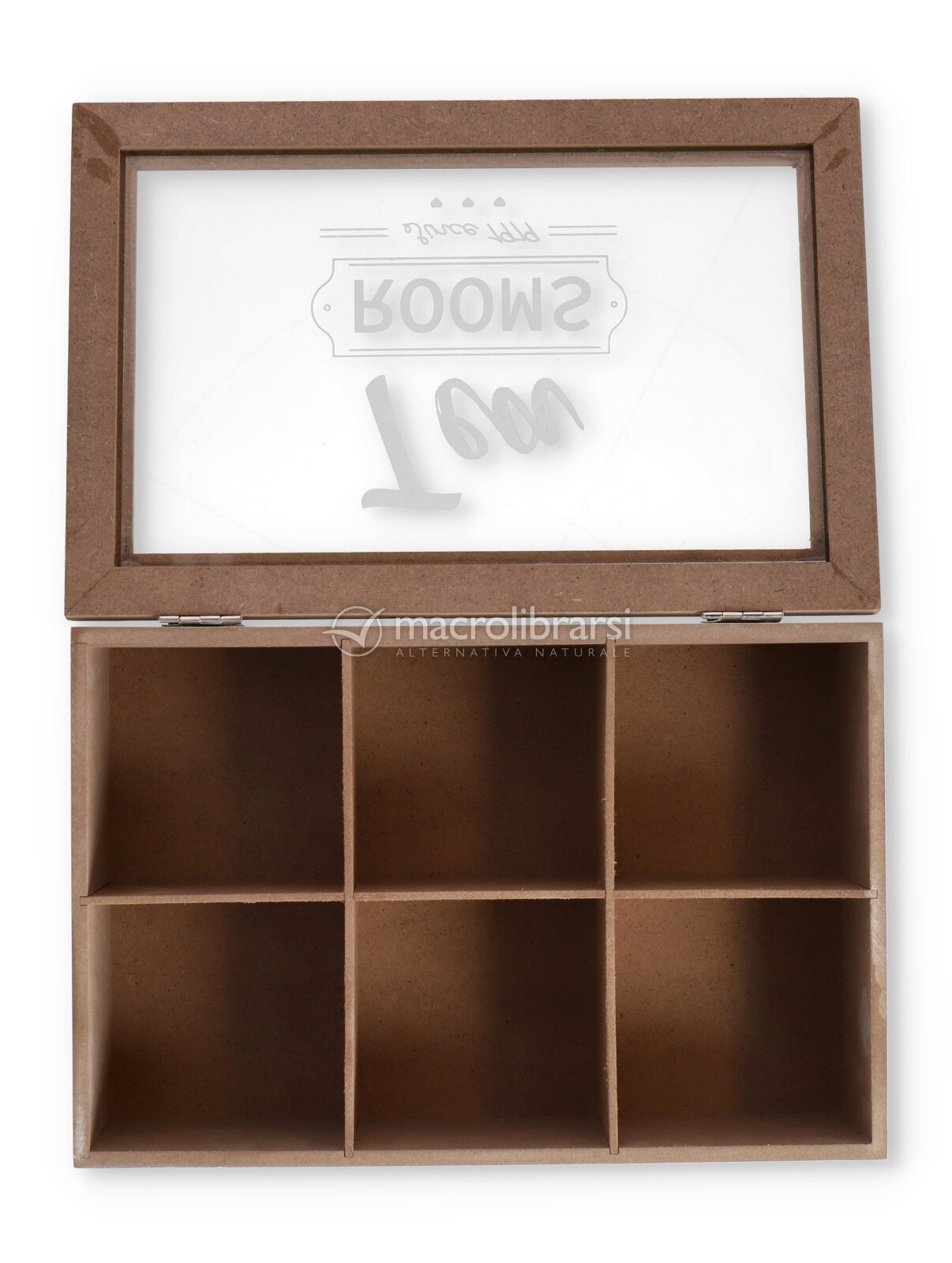 Il contenitore in legno e vetro Te Rooms Since 1979 è una scatola perfetta per le tue bustine di tè preferite. La scatola di legno è ideale anche come organizer per spezie e cialde di caffè.