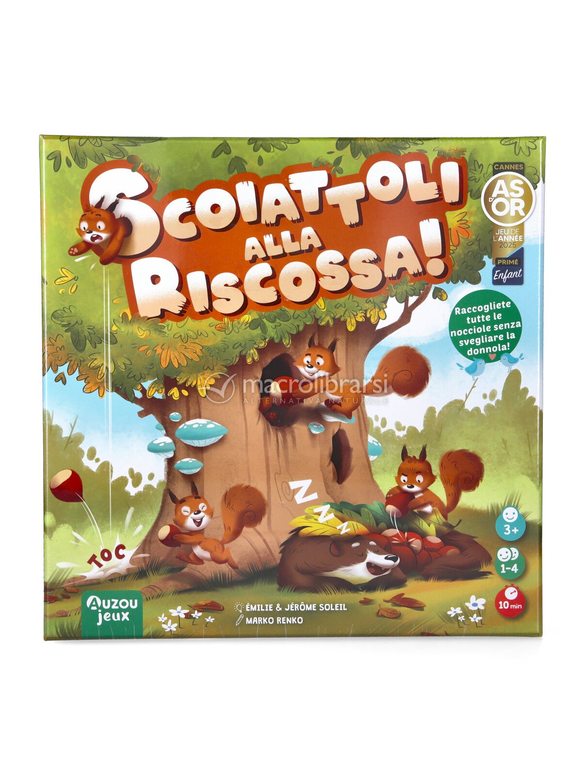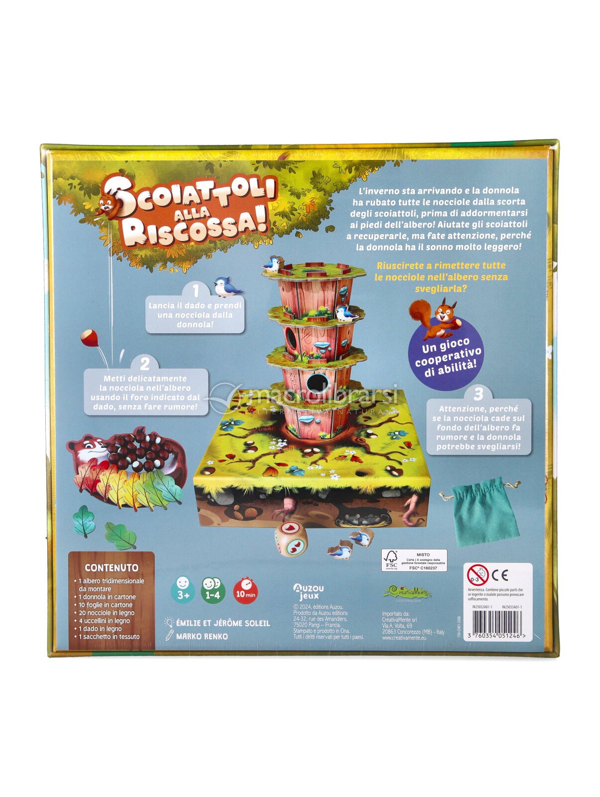 In Scoiattoli alla riscossa, serve concentrazione, ascolto e lavoro di squadra per recuperare le nocciole rubate… senza svegliare la donnola dal sonno leggerissimo!