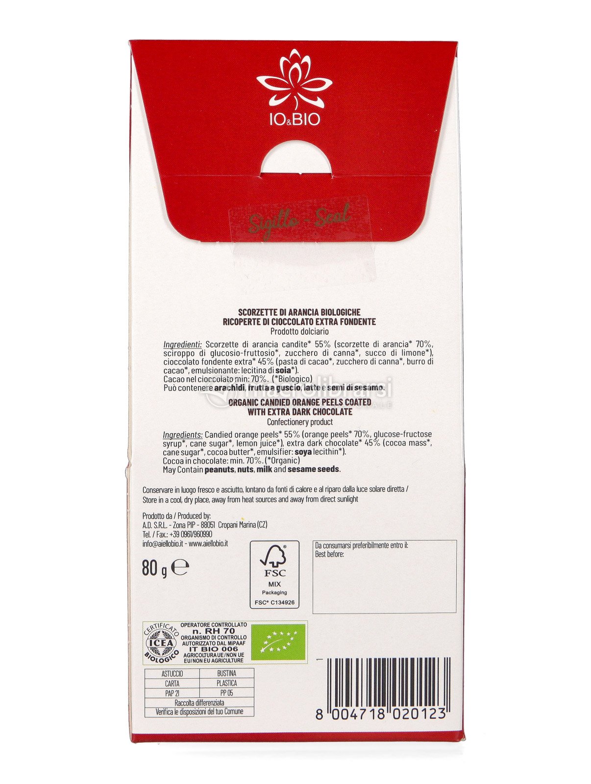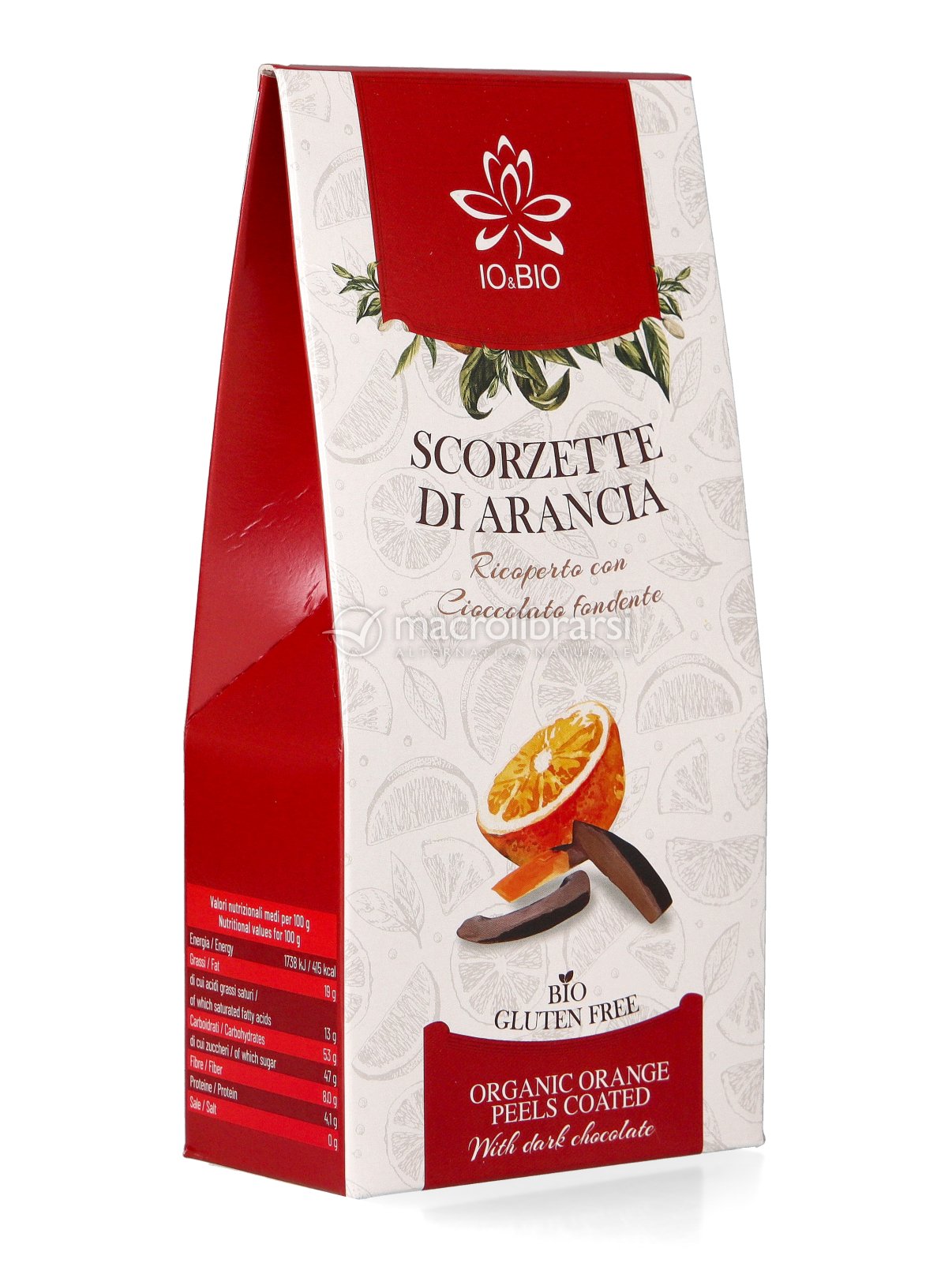 Le scorzette di arancia ricoperte Io&Bio offrono il mix di sapori d'eccellenza: arance calabresi bagnate in un velo sottilissimo di cioccolato.