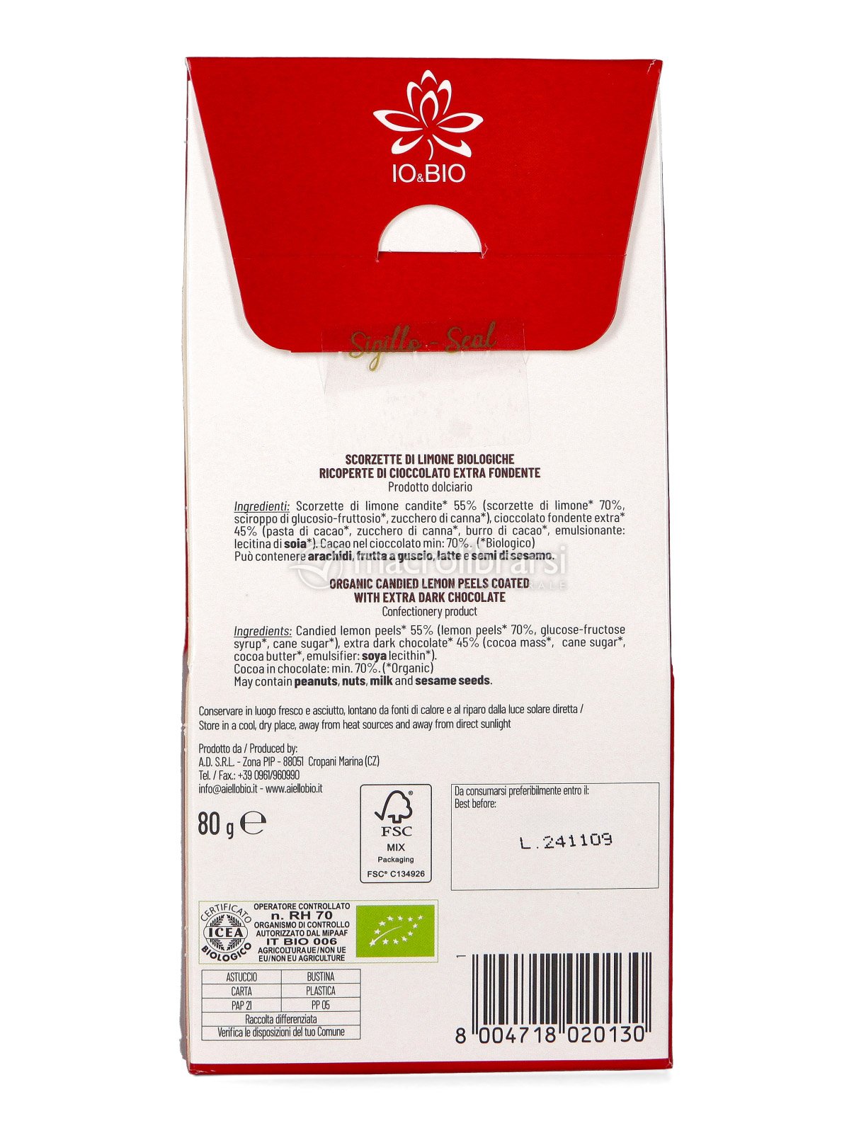 Le Scorzette di Limone Ricoperte al Cioccolato Fondente sono un prodotto dolciario a base di ingredienti biologici e naturali.