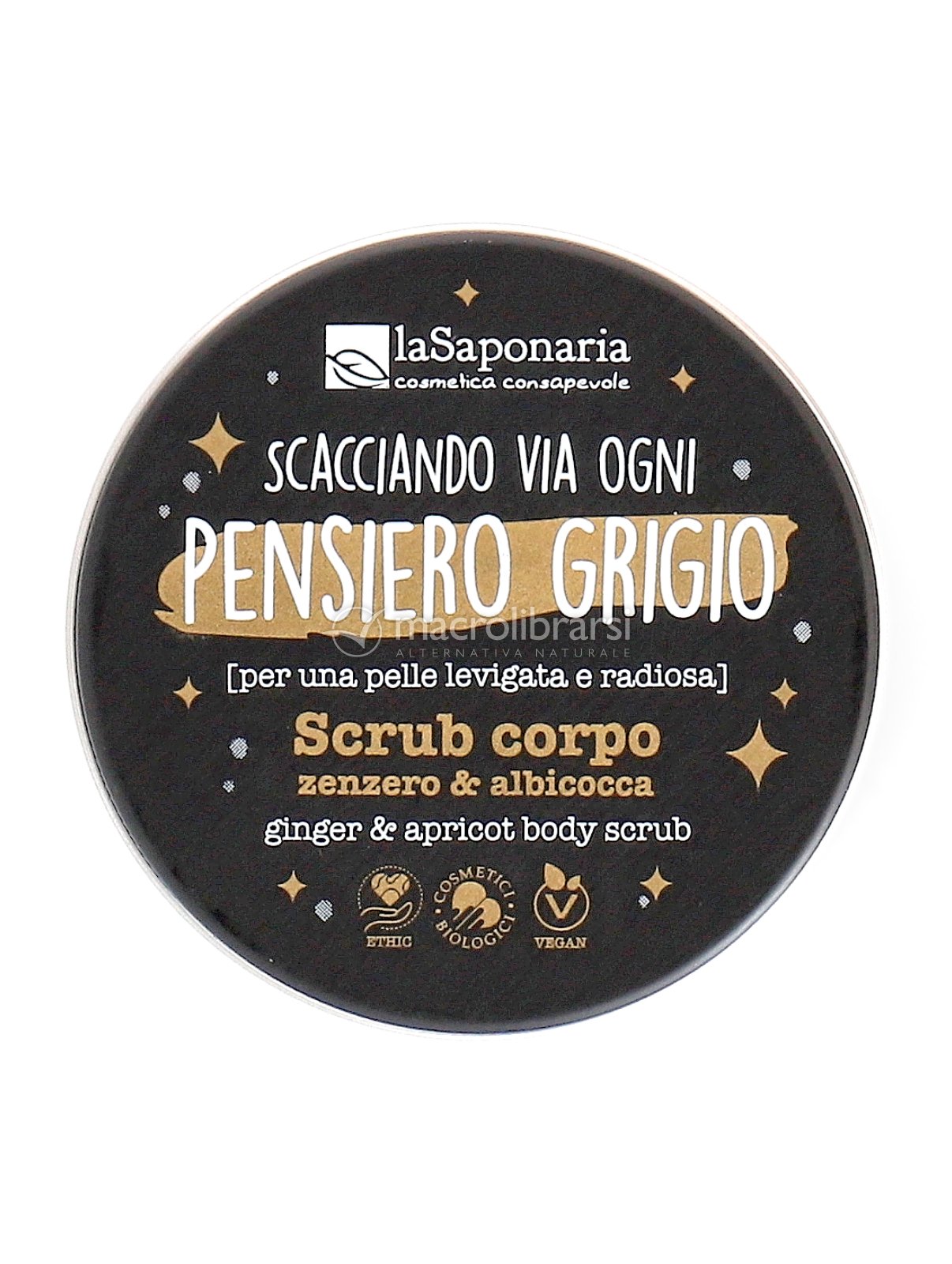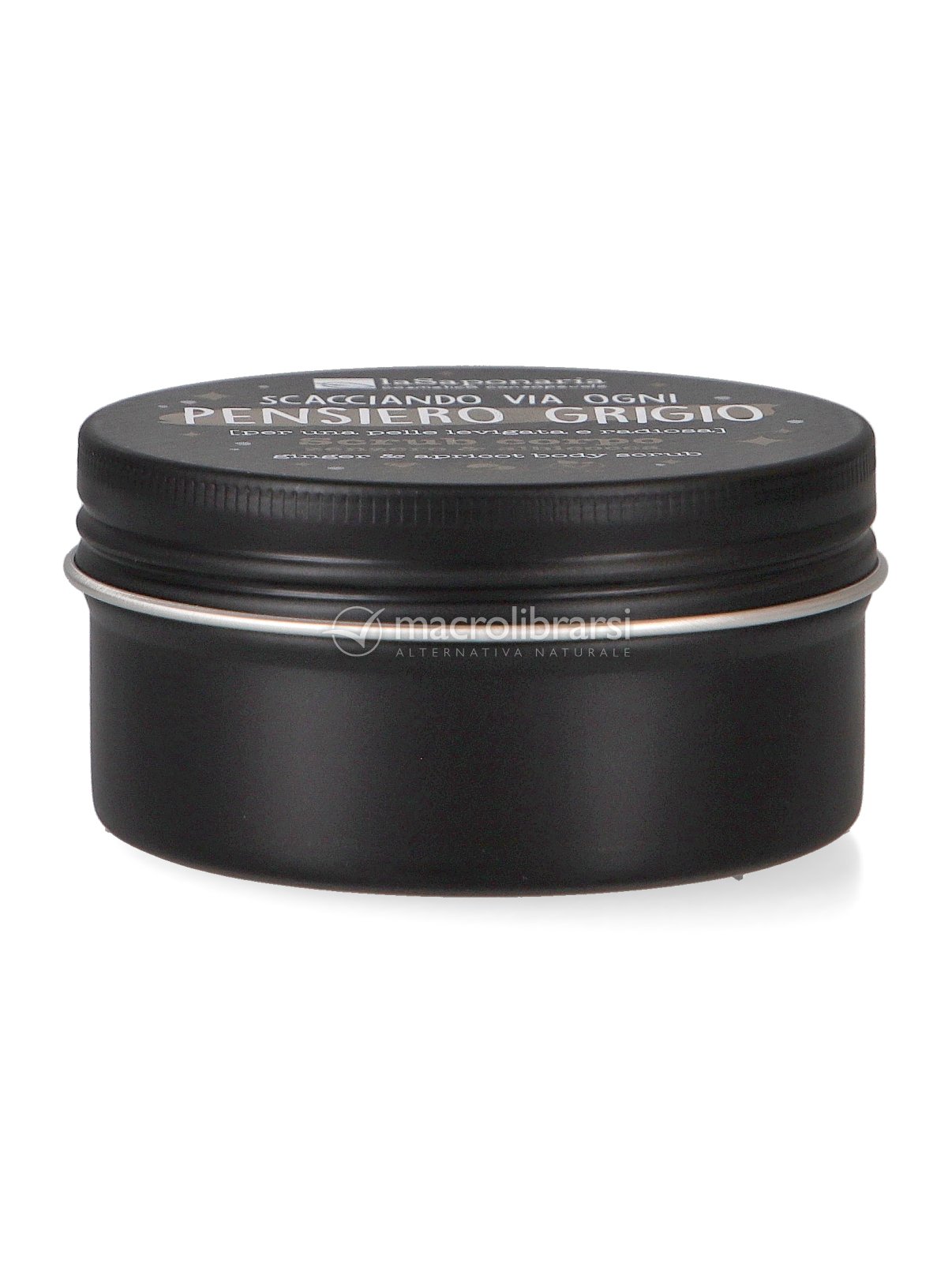 "Scacciando via ogni pensiero grigio" è lo scrub corpo biologico zenzero & albicocca con granuli di cellulosa biodegradabile per esfoliare delicatamente la pelle e lasciarla morbida, vellutata e profumata.