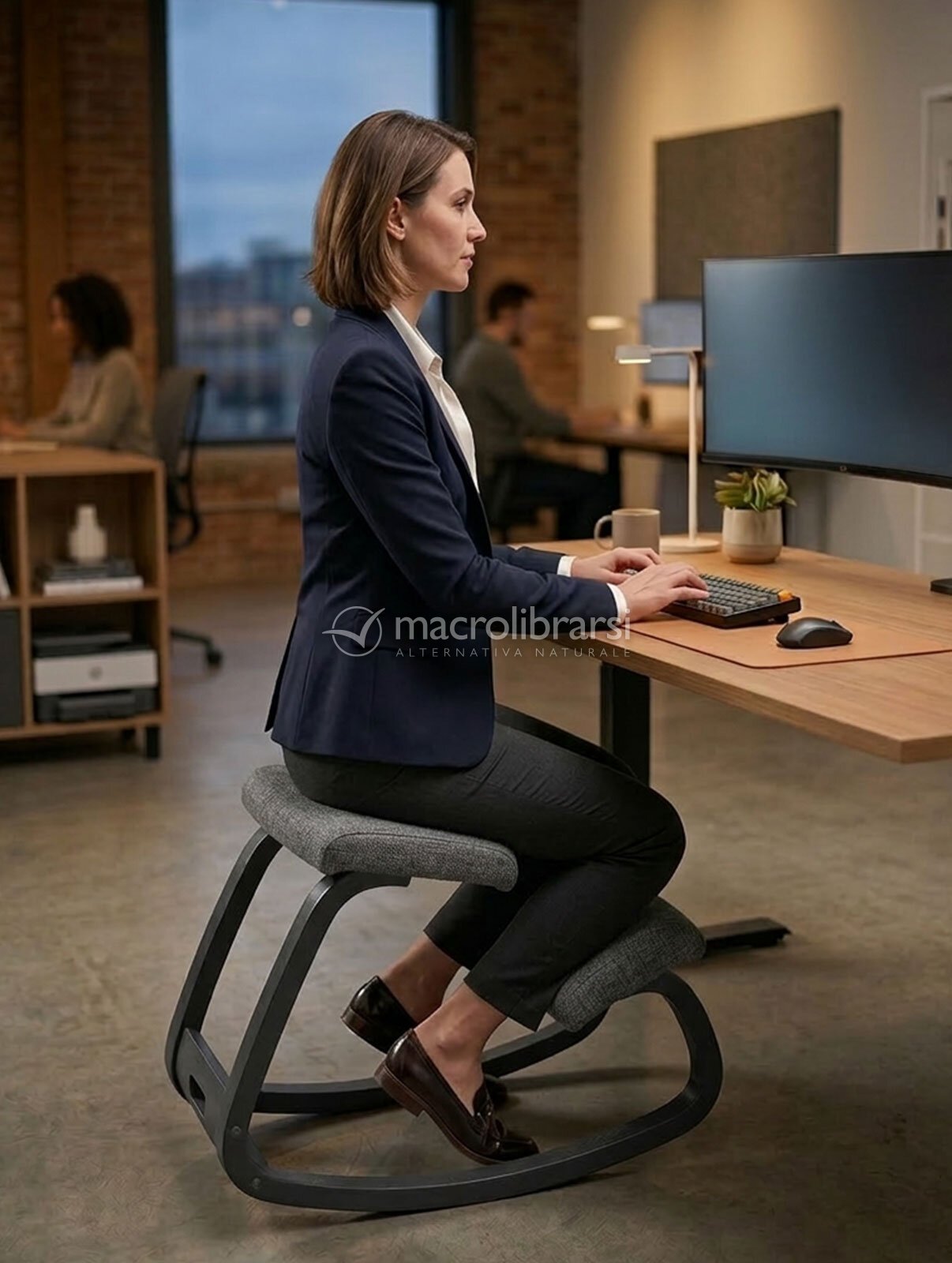 - La base basculante favorisce inoltre il movimento e permette di assumere differenti posture lasciando sempre la colonna vertebrale in assetto fisiologico, con benefici sia per l’apparato respiratorio, sia per quello circolatorio. La base basculante stimola anche il movimento dei piedi, svolgendo un’azione determinante nell’attivare il flusso di ritorno verso il cuore, inoltre stimola la ricerca di un naturale punto di equilibrio. In questo modo i muscoli della schiena e dell’addome si muovono, prevenendo l’accumulo di tensione a livello della schiena, del collo e delle spalle.