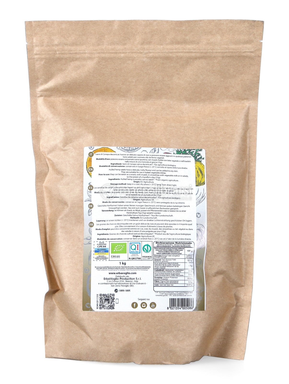 Buoni semi di canapa, in formato convenienza da un chilo, sapore piacevole che ricorda la nocciola. Ottimi nelle insalate ma anche nelle zuppe, con verdure o semplicemente sgranocchiati così