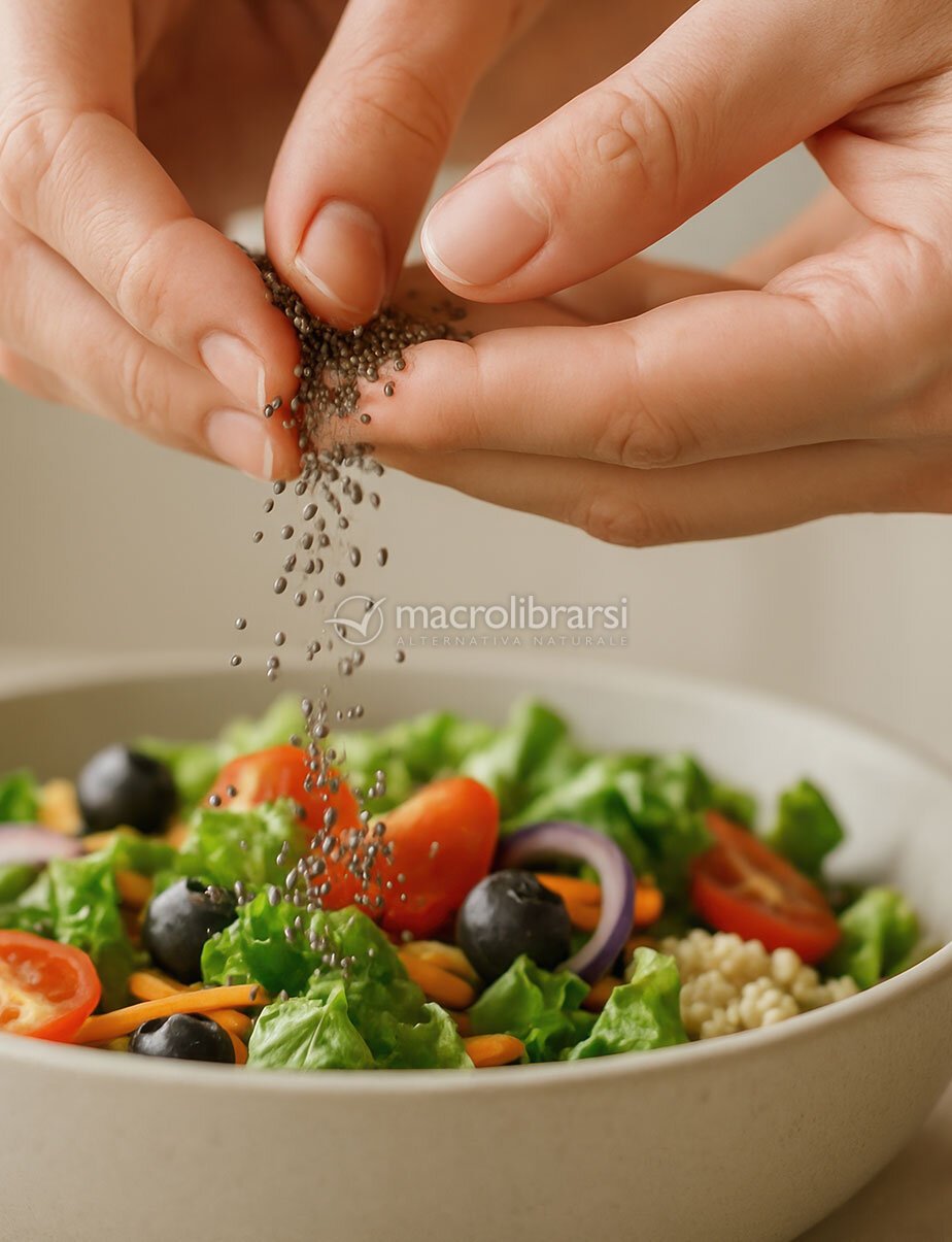 Uso i semi di chia da tanto e questi sono particolarmente apprezzati da me: contengono nutrienti importanti per il nostro organismo e sono molto versatili.li uso nell' impasto del pane, sopra i biscotti gtatti in casa, nello yogurt con frutta di stagione,un po' di cannella, oppure yogurt,semi di chia,lamelle di mandorle o granella di nocciole e/o gocce di cioccolato, oppure yogurt ,semi di chia uvetta,mela ,cannella e noci tritate. Oltre che con lo yogurt lo uso anche con il latte vegetale,in particolare con il latte di avena,in una tazza da tè metto due cucchiai radi di semi di chia,un po' di cannella ,un pizzico di vaniglia,un po' di uvatta lavata aggiungo latte di avena e lascio in frigo tutta la notte,la mattina dopo capovolgo la tazza su di un piattino e viene fuori un bel budino,che si può arricchire o con un po' di cioccolato sciolto a bagno Maria oppure con il cartubbato per chi ha problemi con il cioccolato