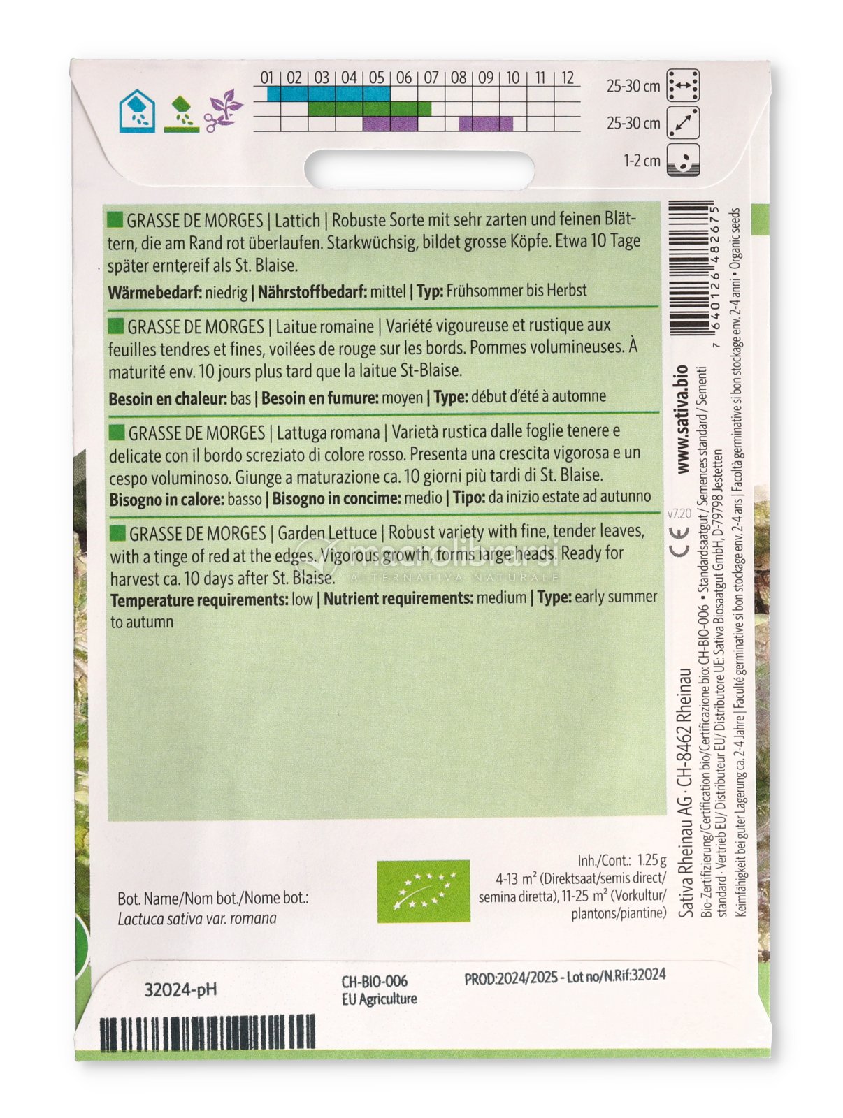Bellissima varietà di lattuga romana. Questa grasse de morges già dai primi giorni è bella carnosa, resistente. Una bella scoperto. I semi sono germinati tutti. Ottimo rapporto qualità-prezzo.