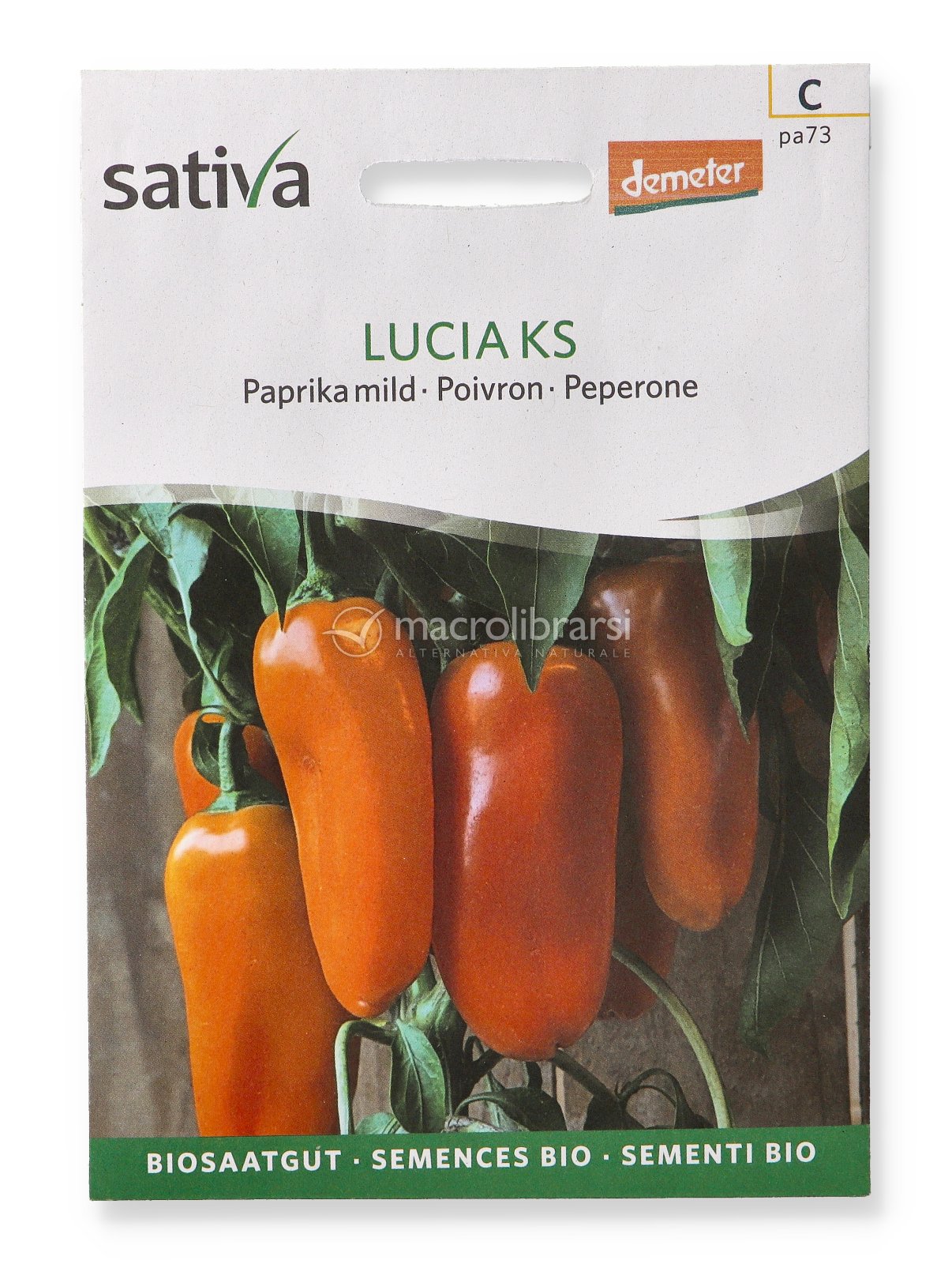 la varietà di peperone Lucia KS ha un gusto dolce e delicato e un colore giallo/arancio. È un peperone selvatico precoce, cresce fino a 80 cm anche senza sostegni grazie ai frutti leggeri. Gustoso, croccante e senza semi: un peperone perfetto come snack.