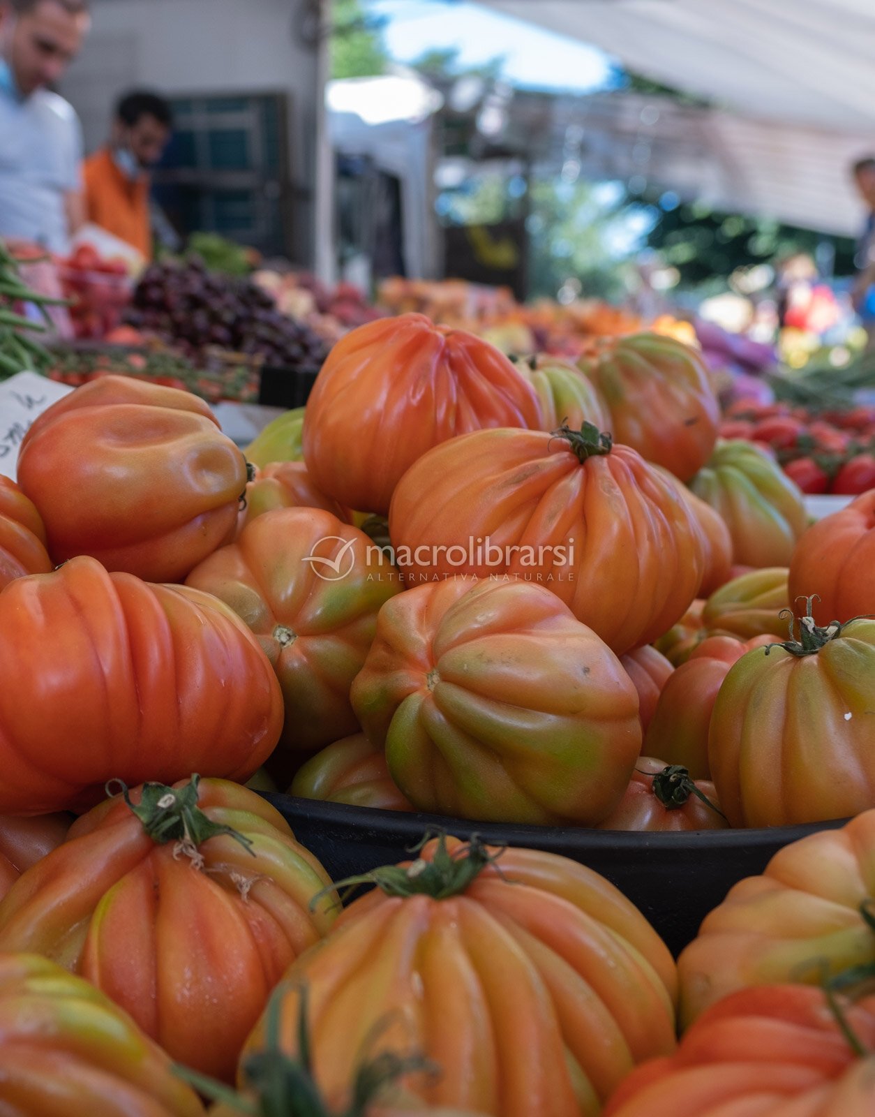 Vecchia Varietà di Pomodoro Canestrino a forma di pera con solcature più o meno pronunciate.