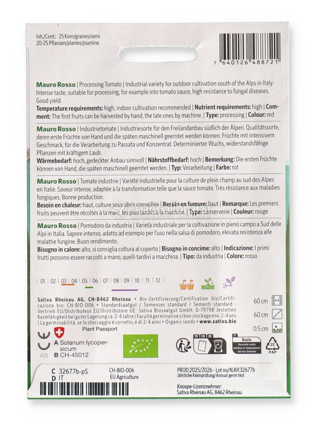 Varietà industriale per la coltivazione in pieno campo a Sud delle Alpi in Italia dal sapore intenso, adatto ad esempio per l’uso nella salsa di pomodoro, elevata resistenza alle malattie fungine. Buon rendimento.