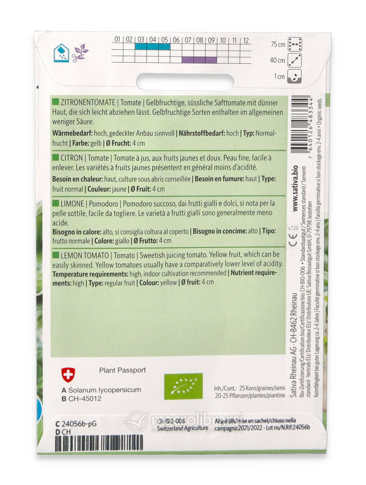 II Pomodoro Limone Giallo è un pomodoro succoso, dai frutti gialli e dolci, si nota per la pelle sottile, facile da togliere.