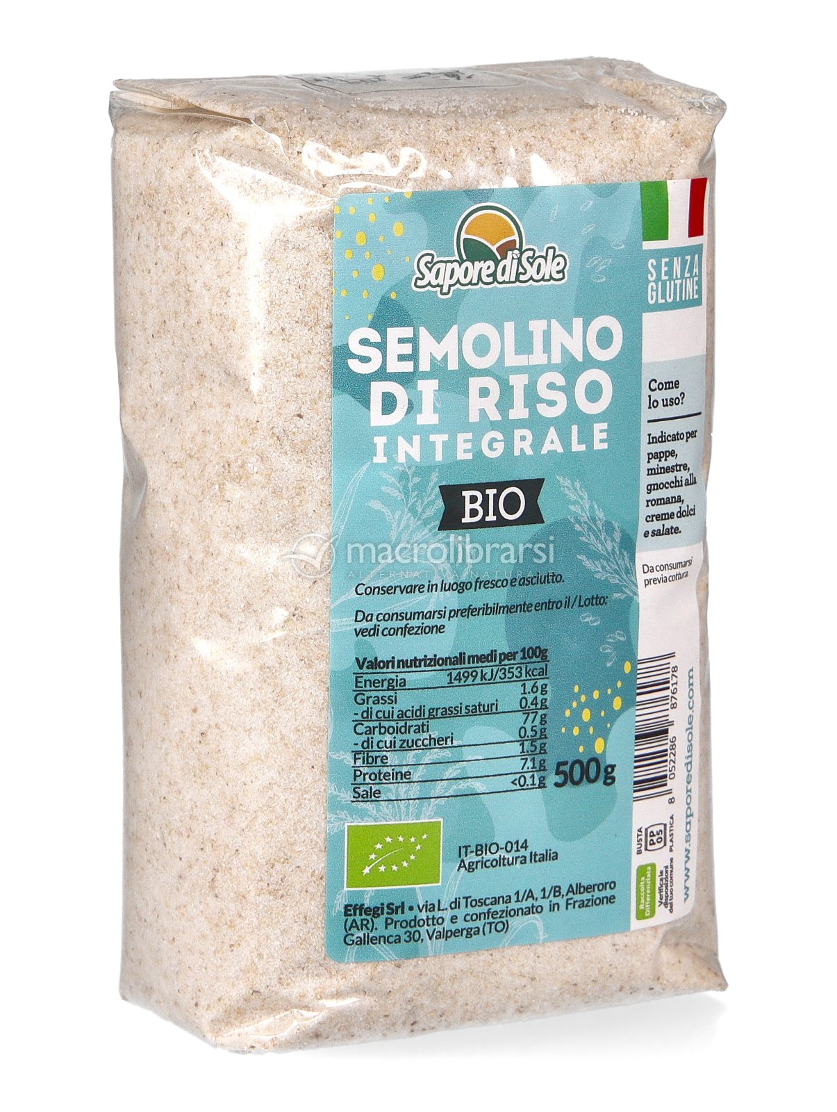 Il Semolino Integrale di Riso Senza Glutine Sapore di Sole è ottenuto da riso integrale biologico italiano, lavorato con cura all’interno di una filiera corta e controllata.