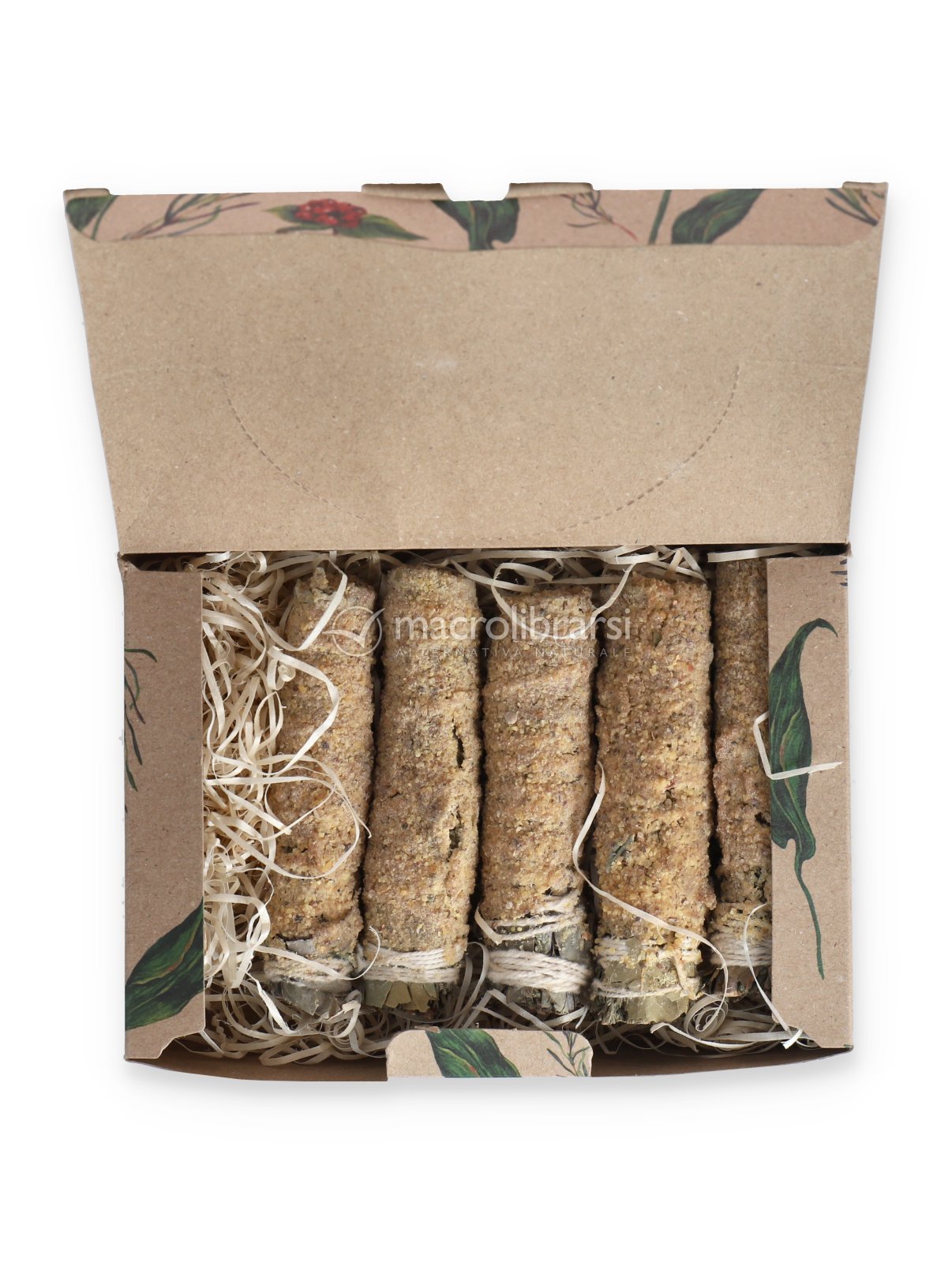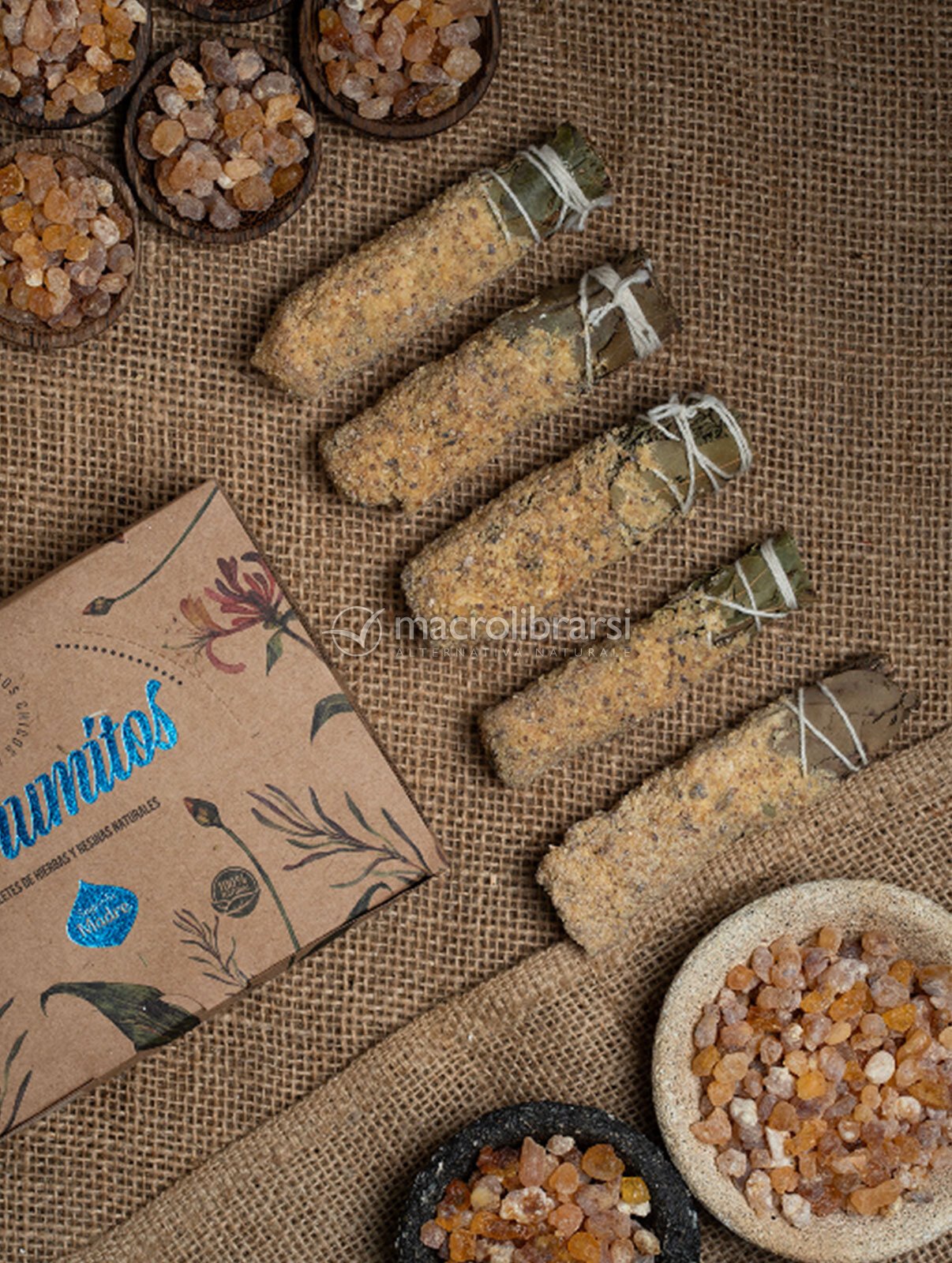 La composizione include erbe aromatiche, resine naturali, olio aromatico concentrato, legante naturale e sale, accuratamente bilanciati per una fumigazione piacevole e persistente. Ogni confezione contiene circa 5 unità con una durata complessiva di circa 2 ore.