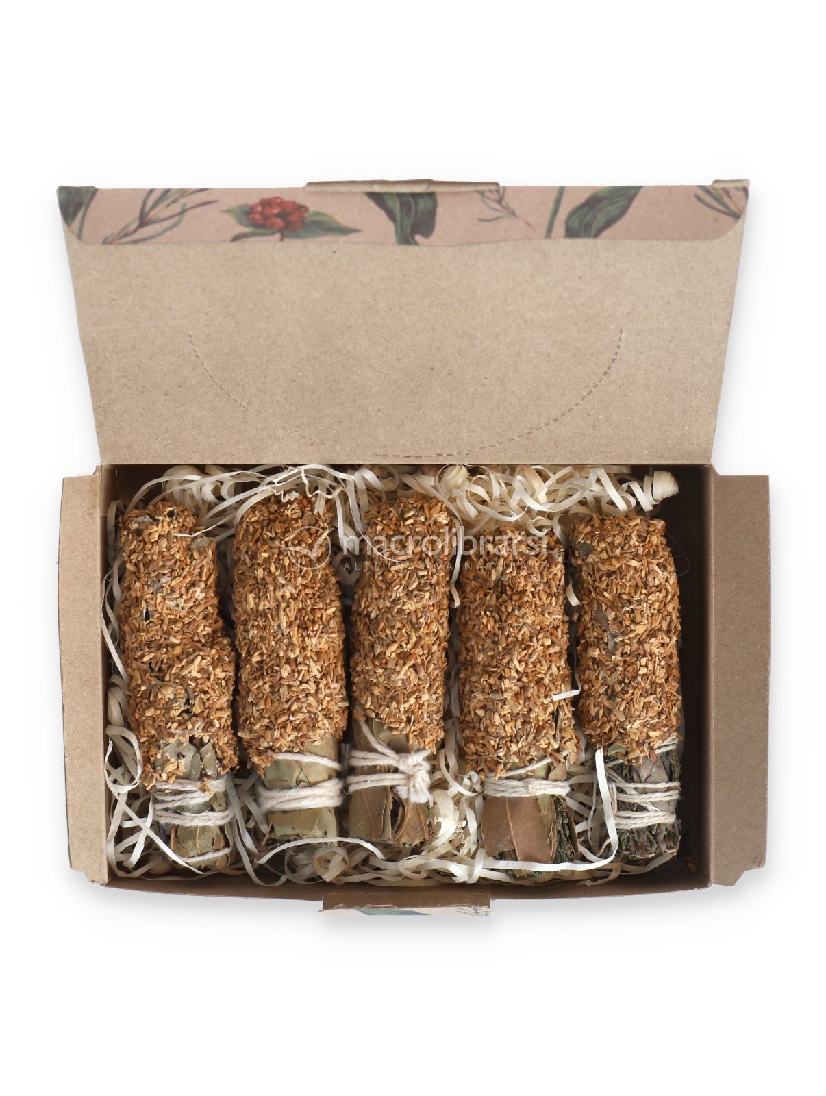 La composizione comprende erbe aromatiche, resine naturali, olio aromatico concentrato, legante naturale e sale, selezionati per offrire una fumigazione persistente e gradevole. Ogni confezione contiene circa 5 unità e garantisce una durata complessiva di circa 2 ore.