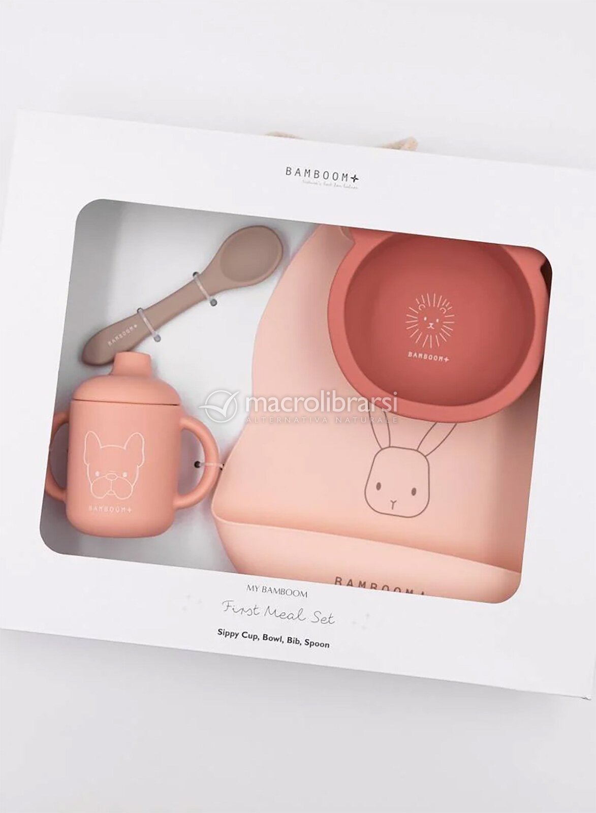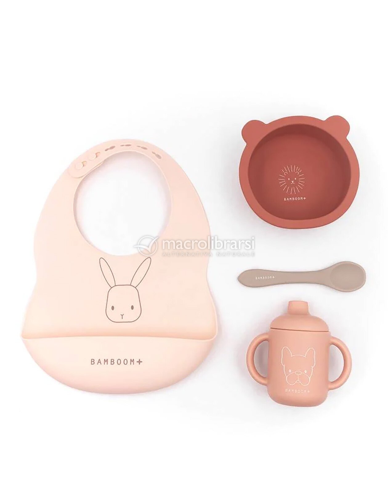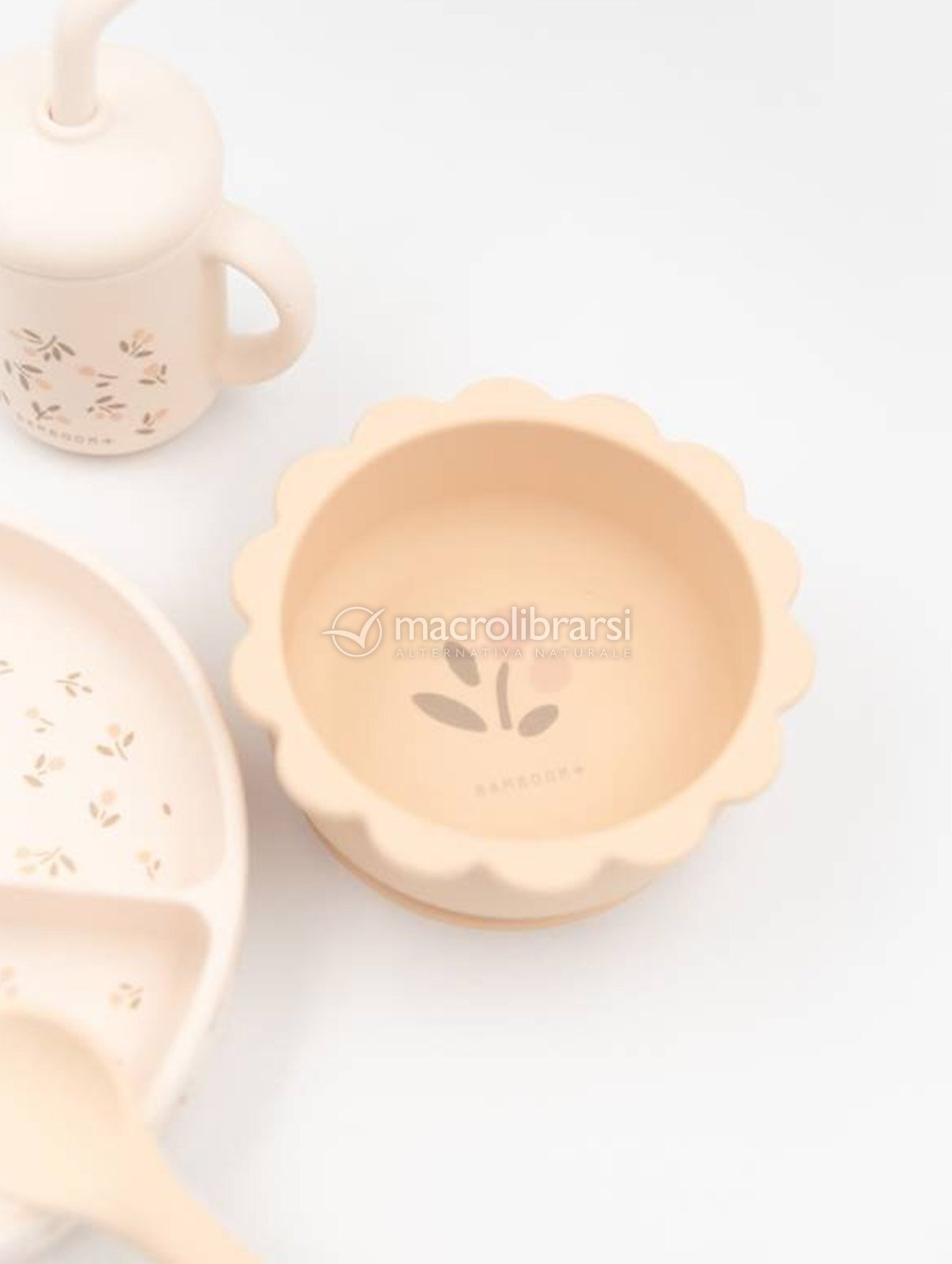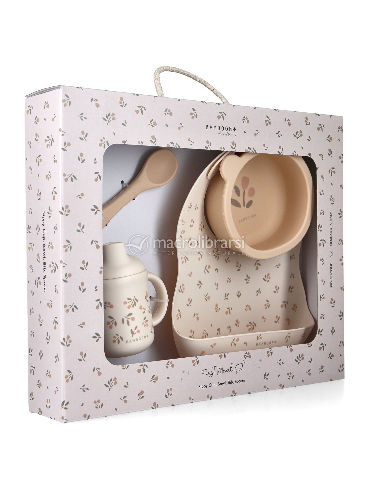 Questo set fa parte della linea Pappa di Bamboom, azienda italiana che seleziona i materiali con estrema attenzione con un occhio di riguardo allo stile e al design.