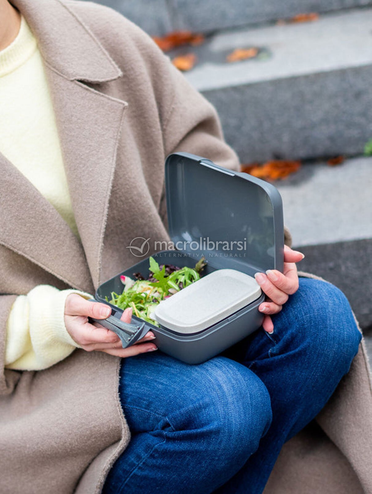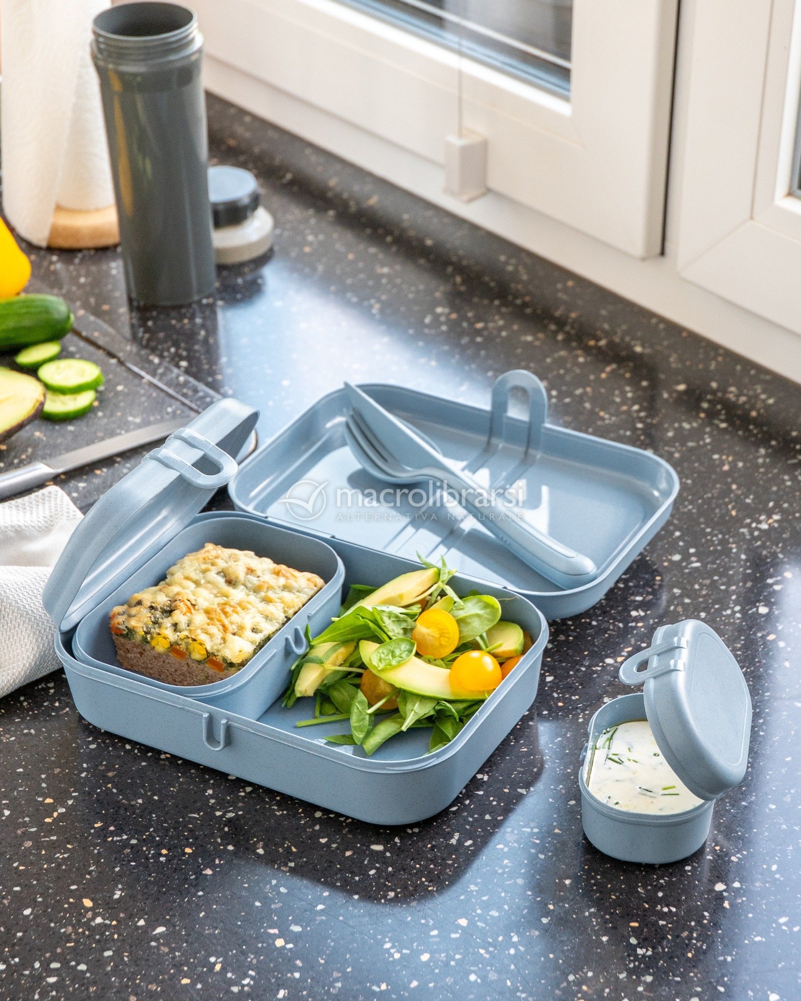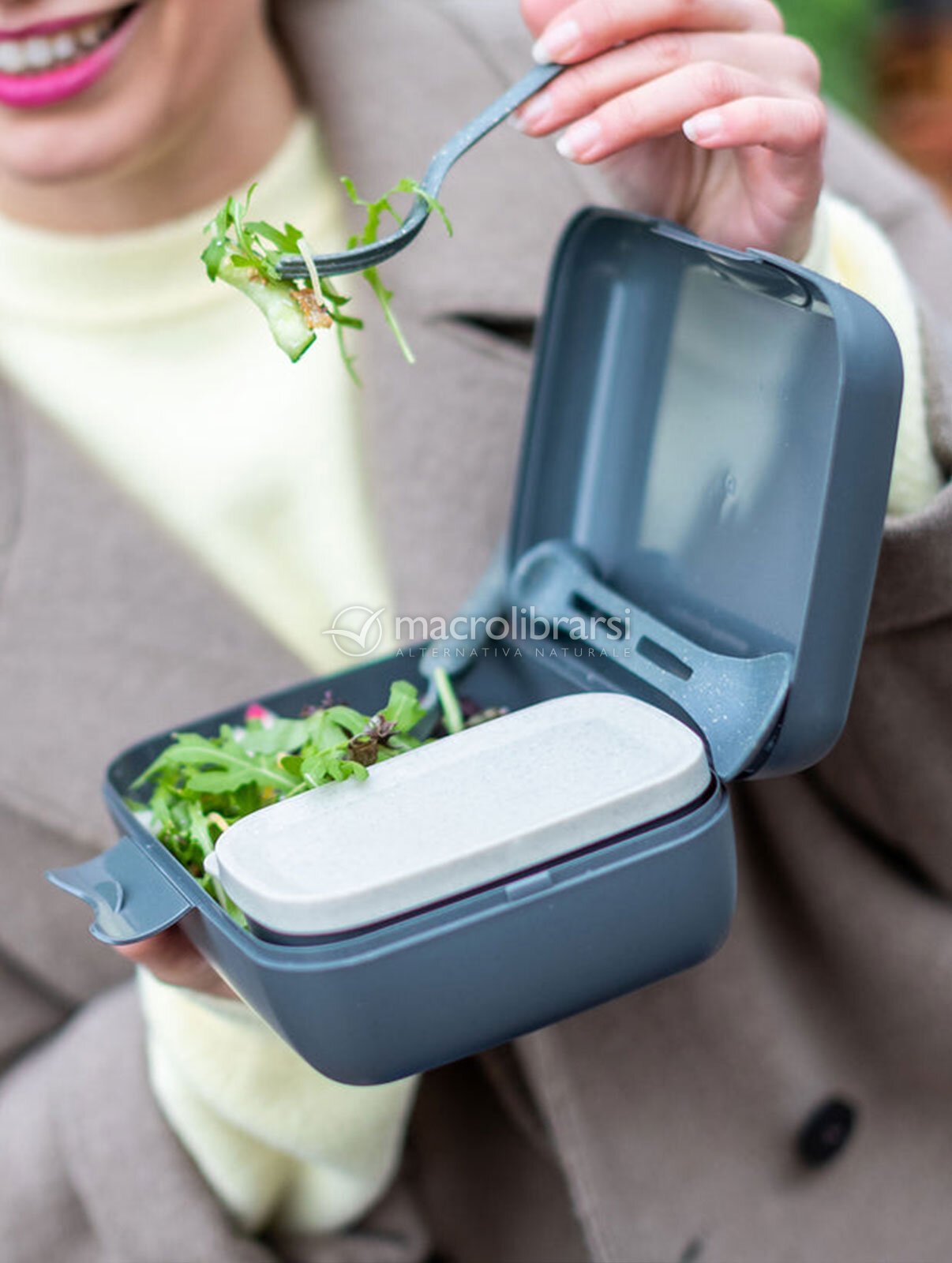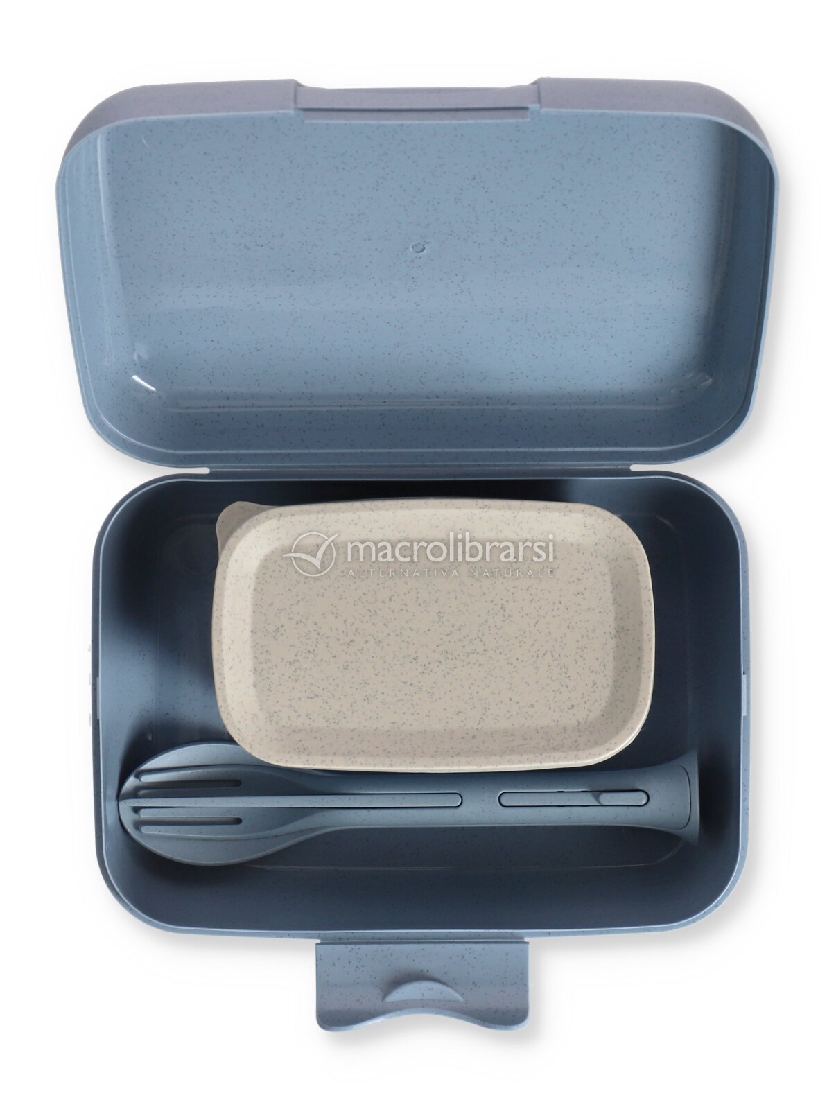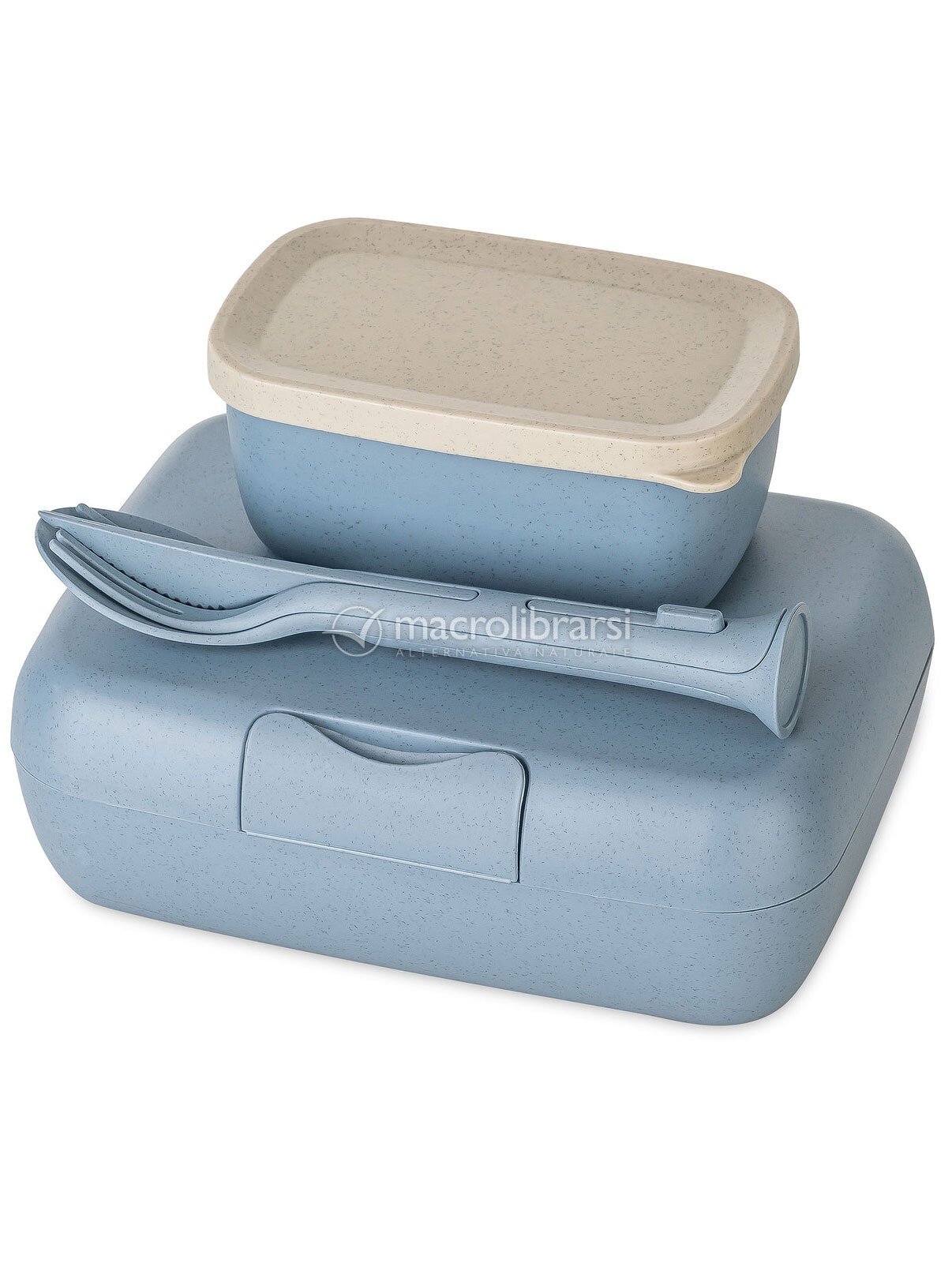| Confezione | 1 lunch box, 1 ciotola con coperchio, 1 set di posate da 3 pezzi |