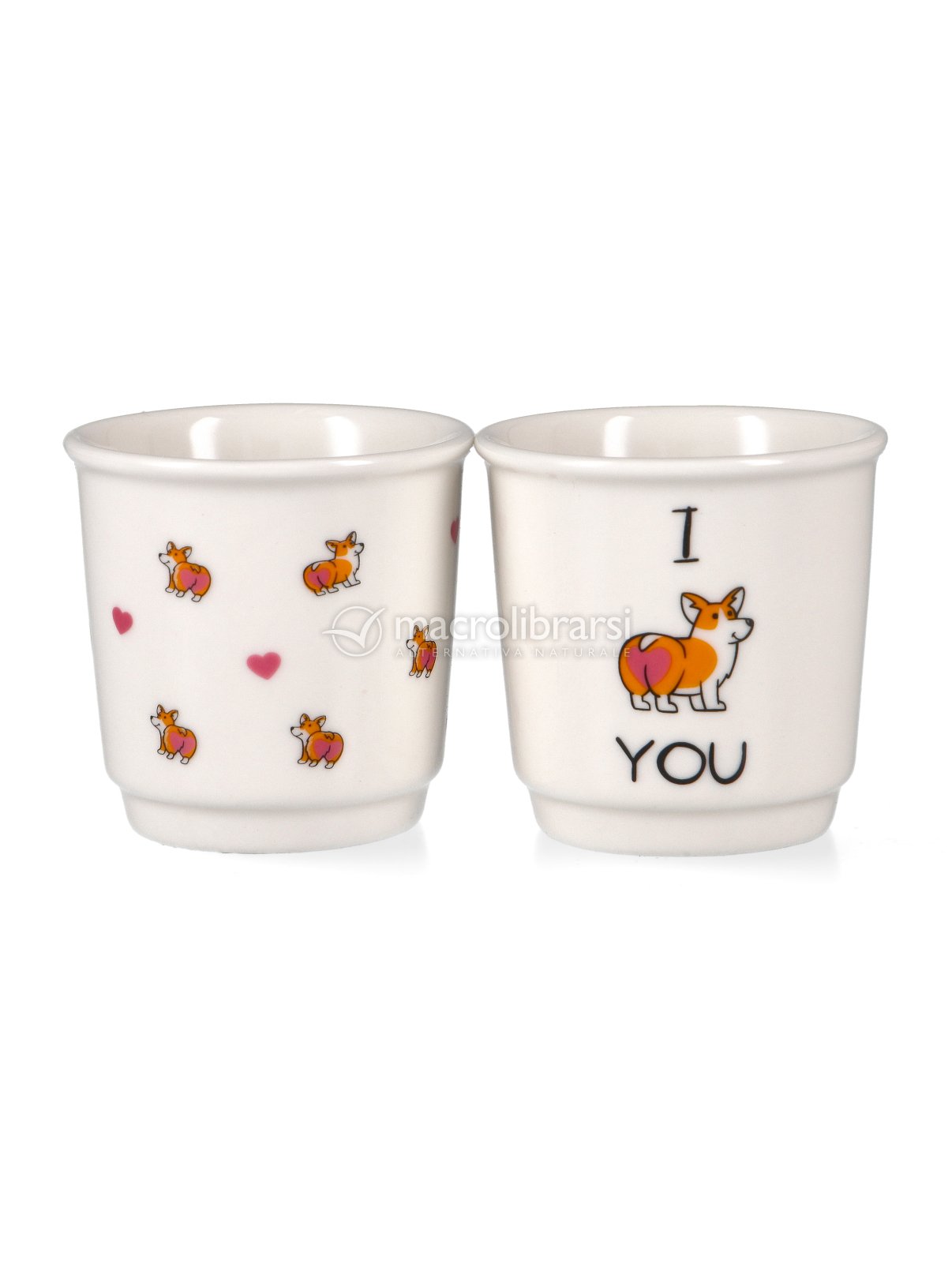 Esprimi tutto il tuo amore con questo tenerissimo set di tazzine da caffè, decorate con adorabili cagnolini Corgie e dolci cuoricini, accompagnati dalla scritta “I love You”.