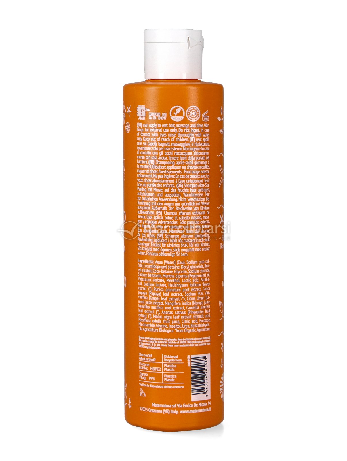 Dì addio ai capelli pesanti e opachi dopo il mare: lo Shampoo Doposole Esfoliante alla Menta di Maternatura è la soluzione innovativa che purifica profondamente il cuoio capelluto eliminando sabbia, cloro e salsedine, restituendo immediata leggerezza e una straordinaria sensazione di freschezza.