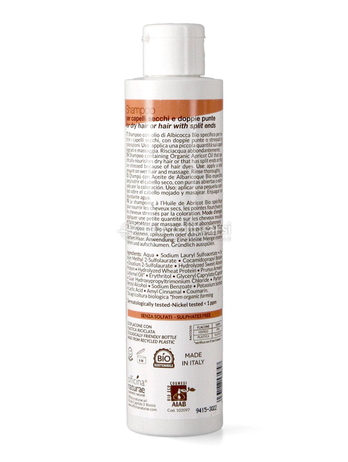 La sua formula eco-bio con tensioattivi ultra-delicati, proteine della Mandorla e del Grano è perfetta per eliminare il crespo dalle punte e l’effetto paglia dell’intera chioma, ma è la presenza dell’olio di nocciolo di Albicocca bio che lo rende così speciale.