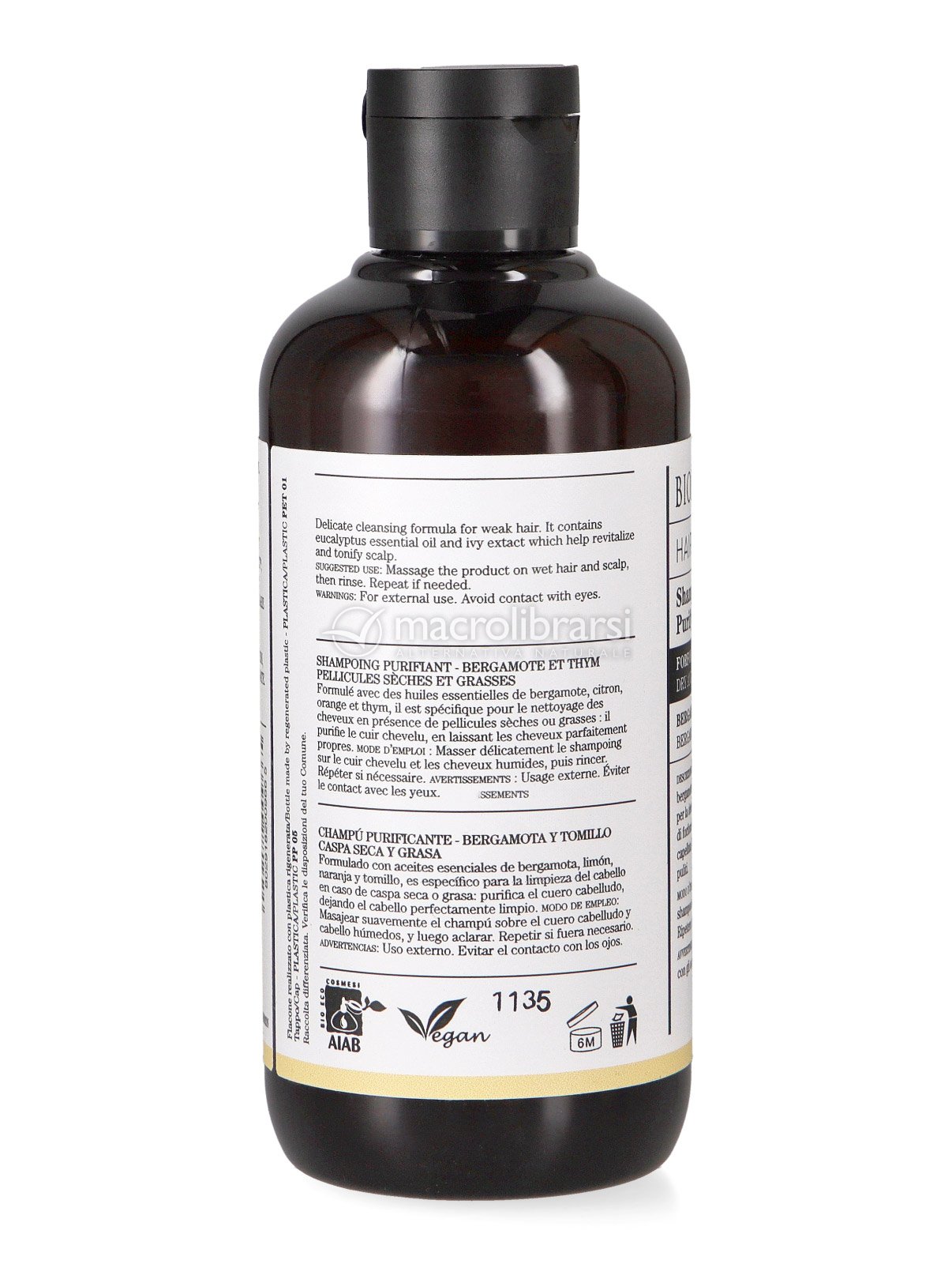 Shampoo purificante per il trattamento degli inestetismi della cute con forfora secca e grassa. Formulato con oli essenziali di bergamotto, limone, arancio e timo che purificano e calmano la cute sensibile e iper-reattiva.
