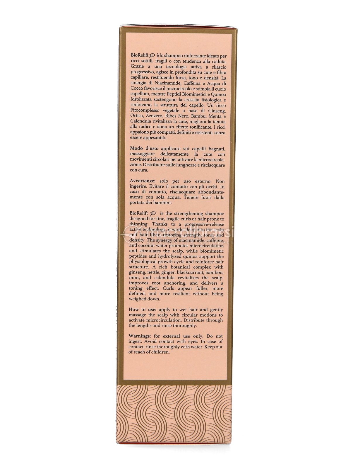 Lo Shampoo Ricci Ristrutturante Biorelift 3D nasce per restituire vitalità alla loro radice, ricostruendo dall’interno la struttura capillare e riattivando il naturale equilibrio del cuoio capelluto.