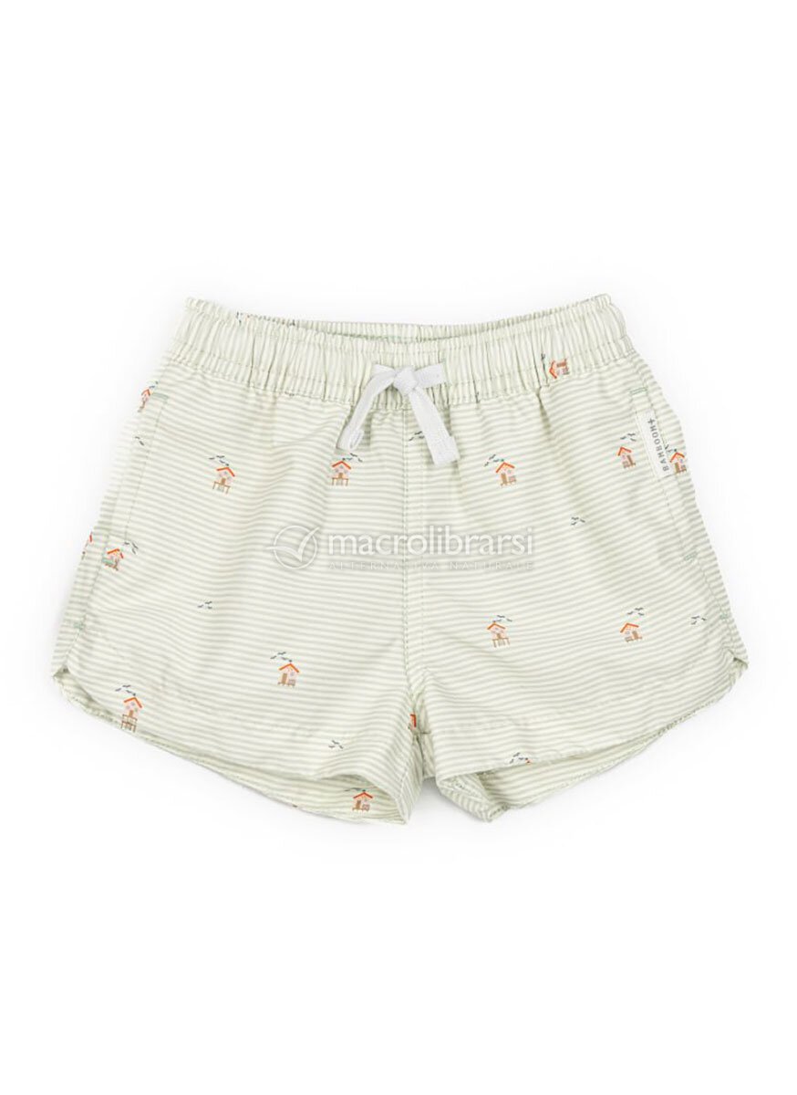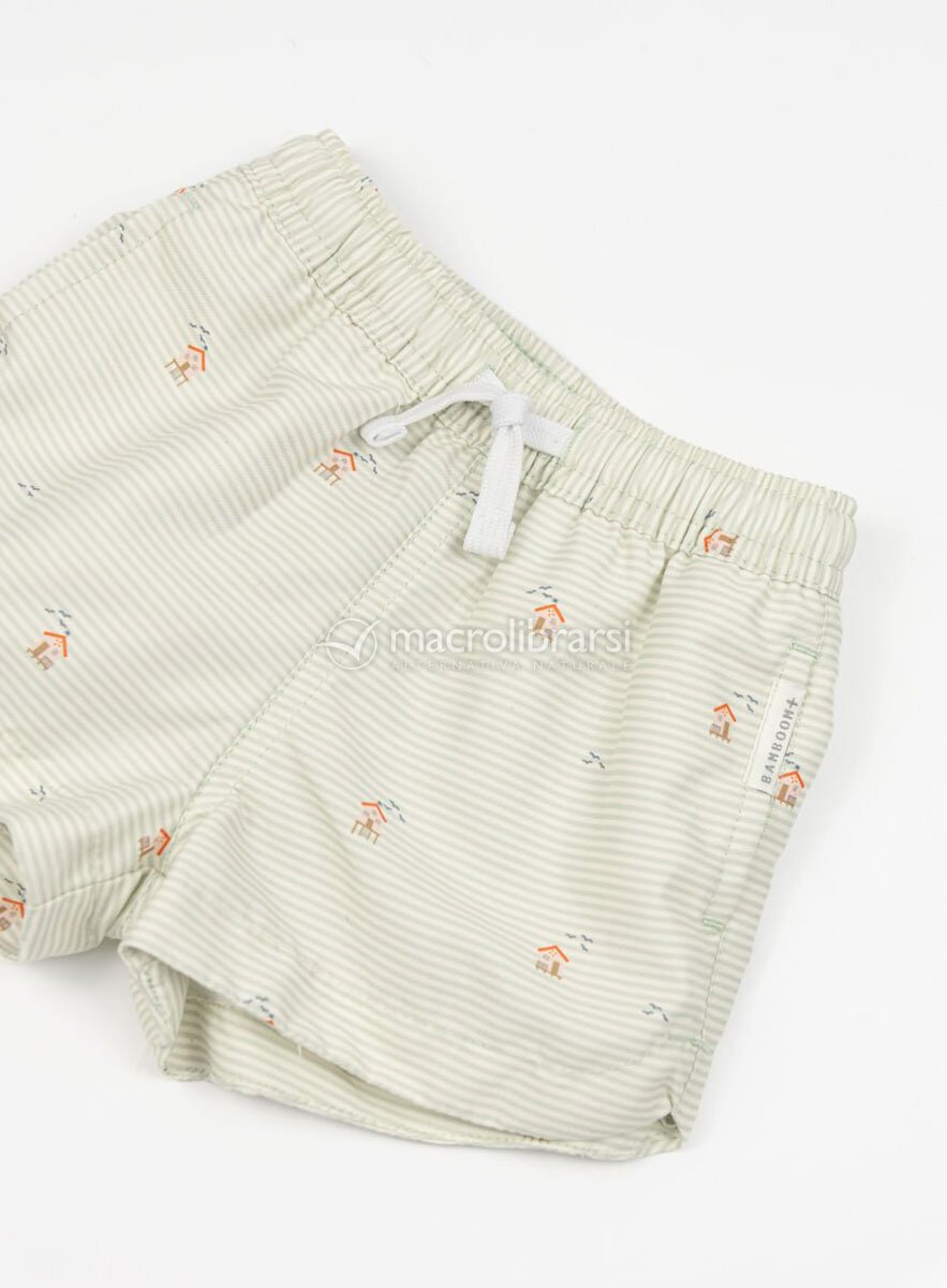 Costume a pantaloncino per bimbo con protezione solare SPF 50, realizzato in poliestere riciclato, morbido e sottile.